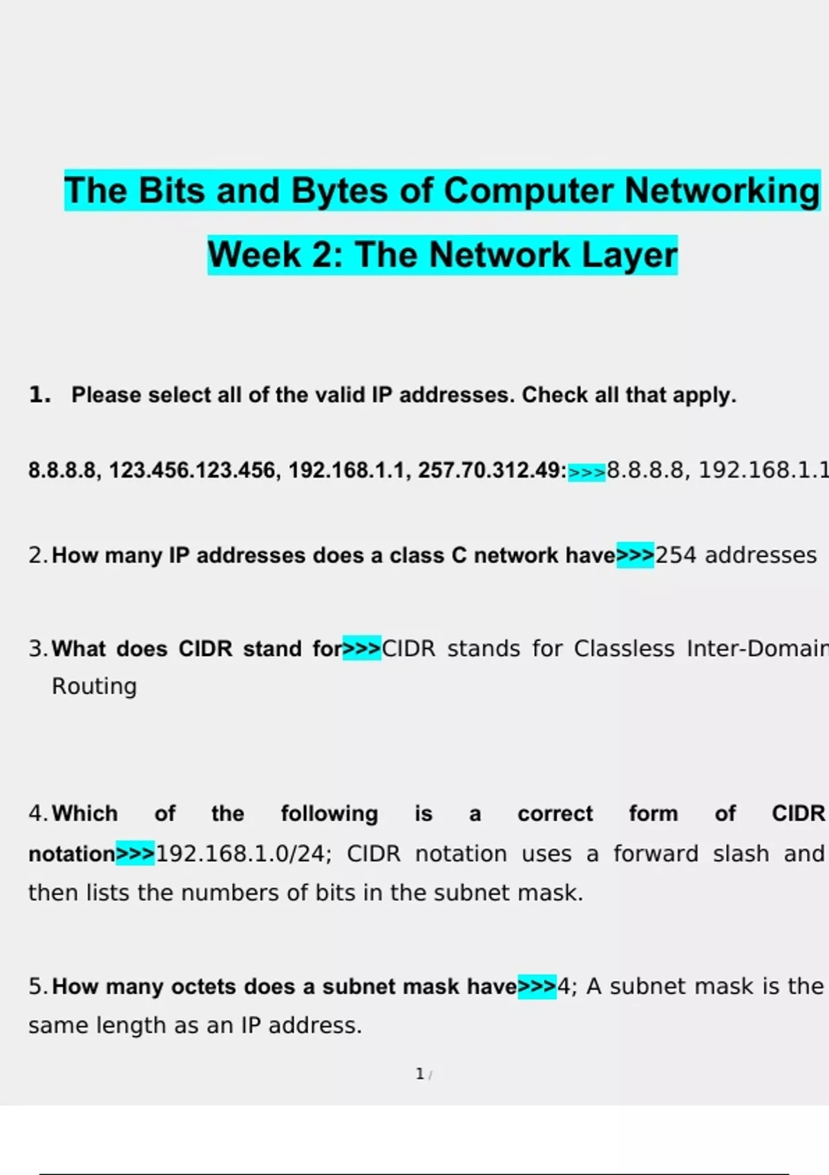 The Bits and Bytes of Computer Networking. Week 2 The Network Layer.docx