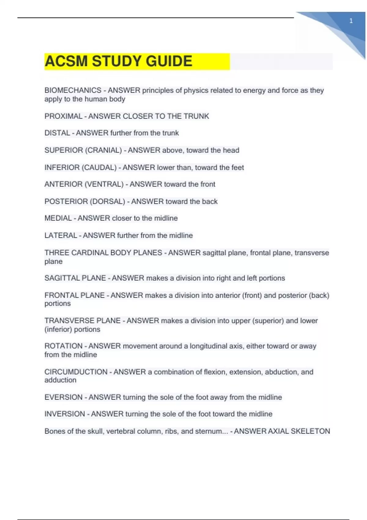 ACSM STUDY GUIDE Q&A LATEST SOLUTION 2023 ACSM STUDY GUIDE Q&A LATEST SOLUTION 2023 ACSM STUDY GUIDE Q&A LATEST SOLUTION 2023