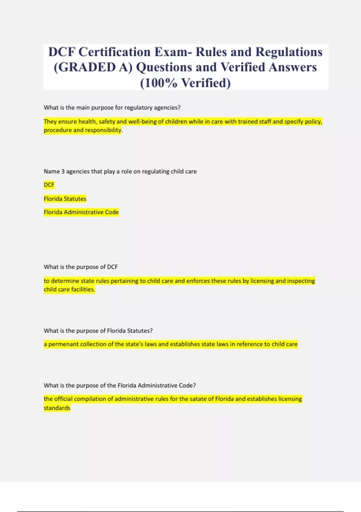 DCF Certification Exam- Rules and Regulations (100 out of 100) Questions and Verified Answers (100% Verified Answers)