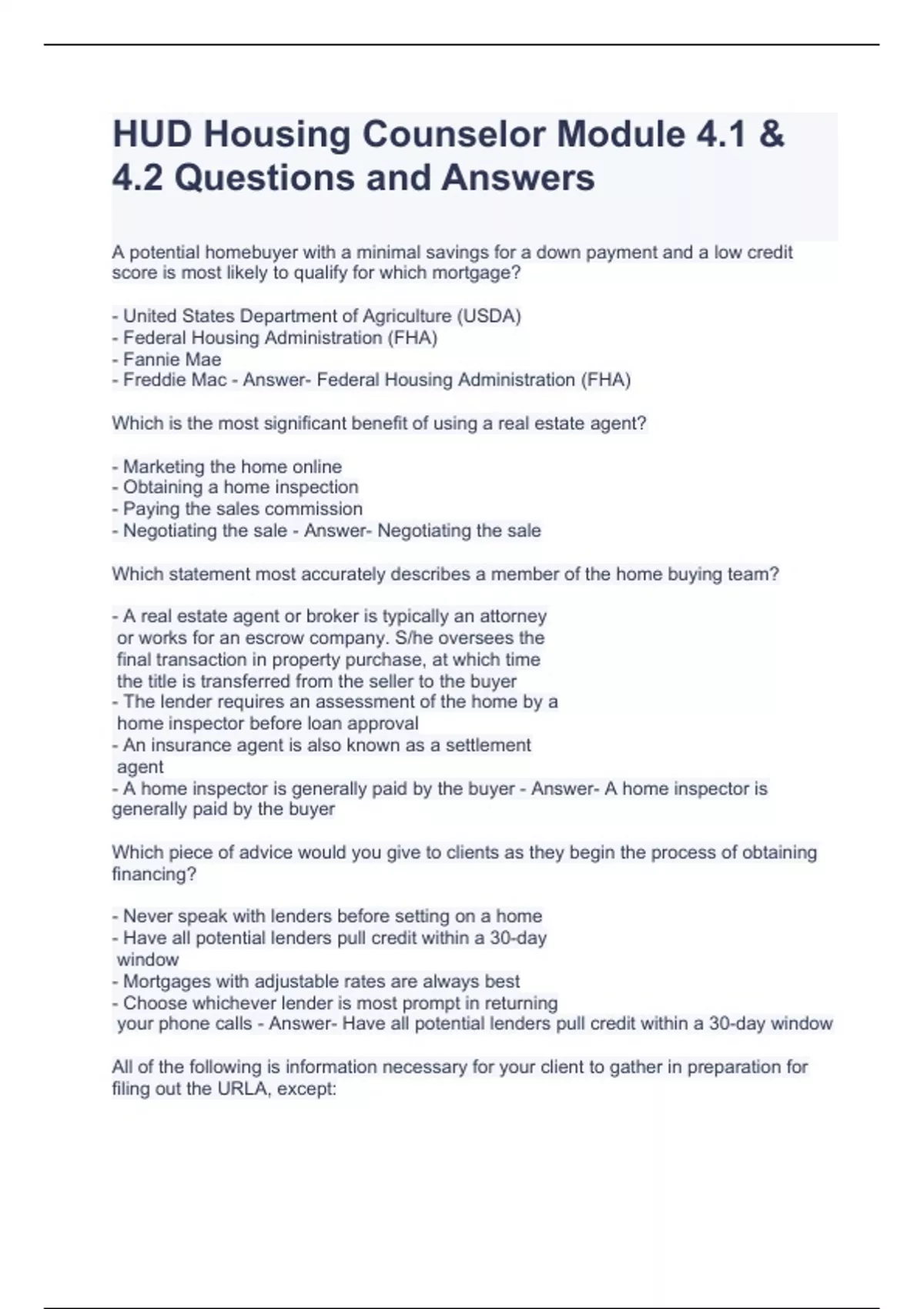 HUD Housing Counselor Module 4.1 & 4.2 Questions and Answers