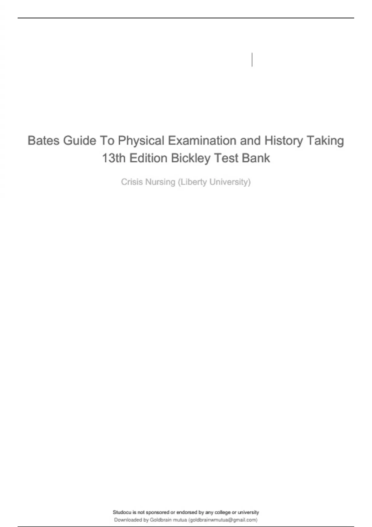 Bates Guide To Physical Examination and History Taking 13th Edition Bickley Test Bank