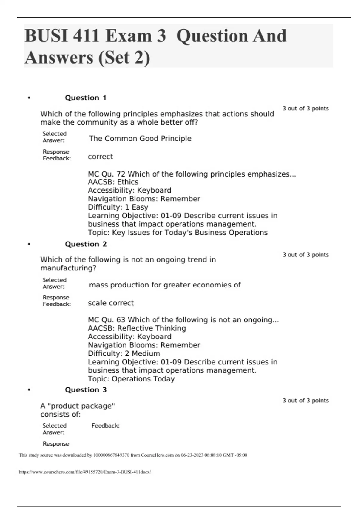 BUSI 411 Exam 3 – Question And Answers (Set 2)