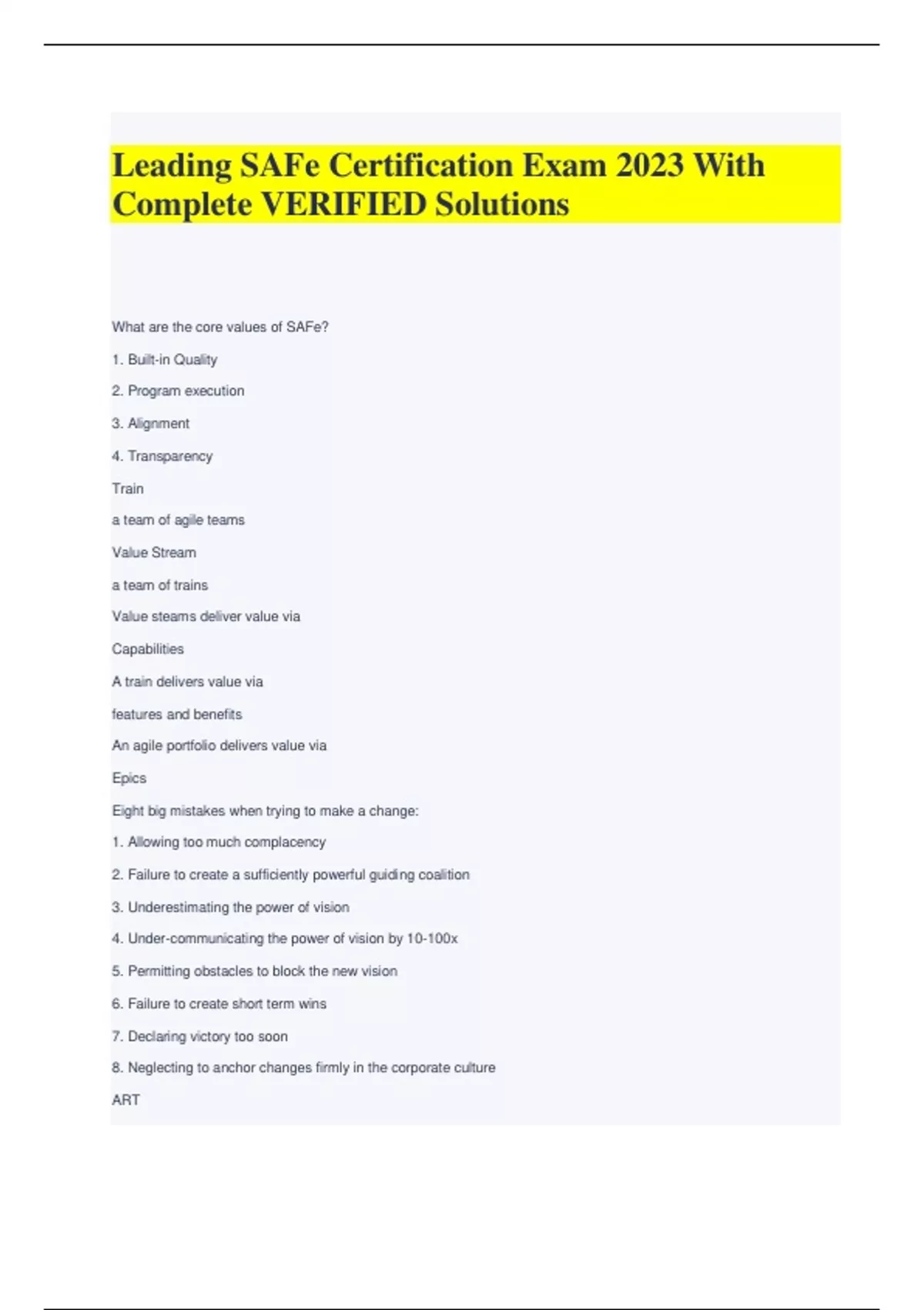 Leading SAFe Certification Exam 2023 With Complete VERIFIED Solutions