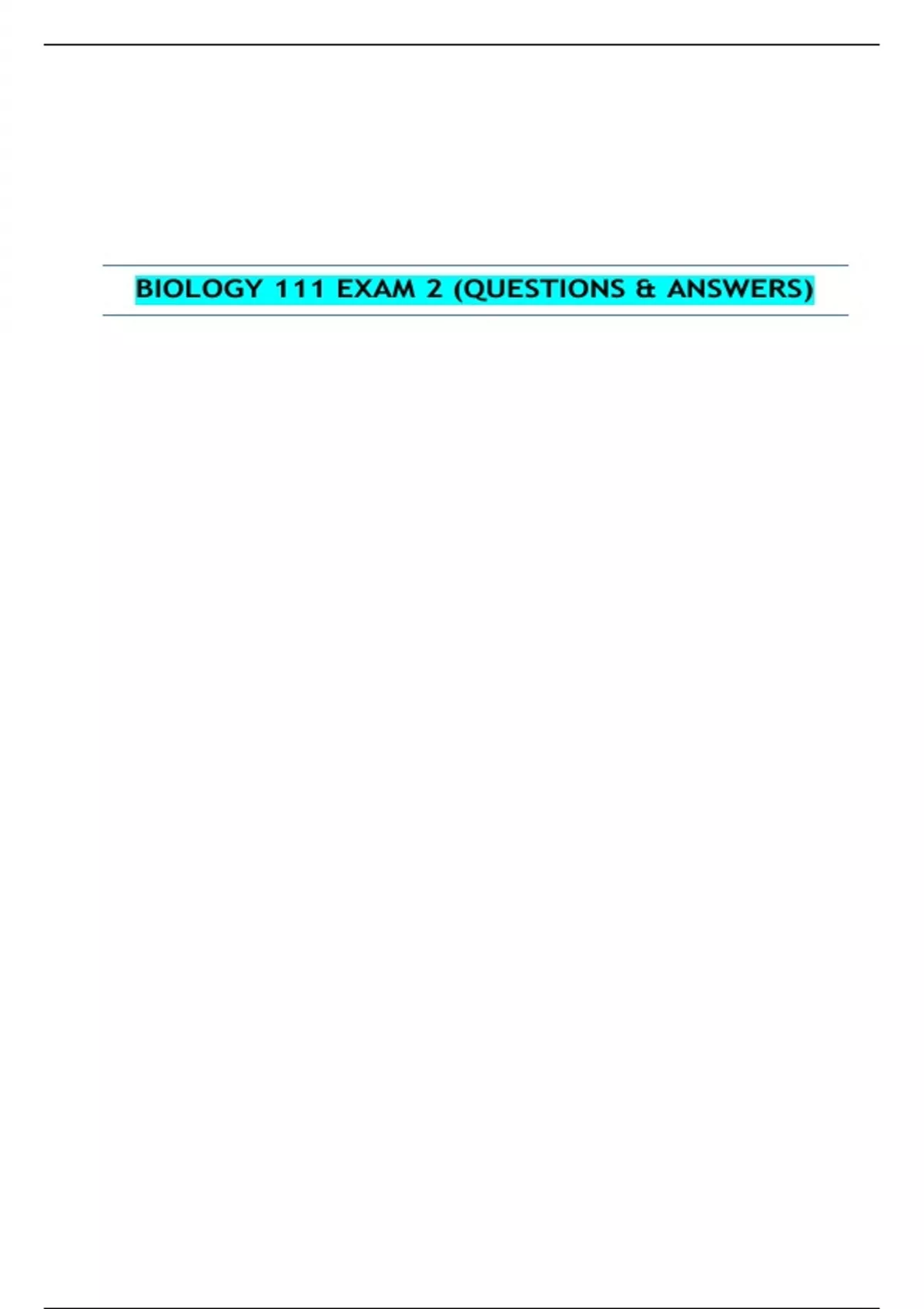 BIOLOGY 111 EXAM 2 (QUESTIONS & ANSWERS)| VERIFIED SOLUTION