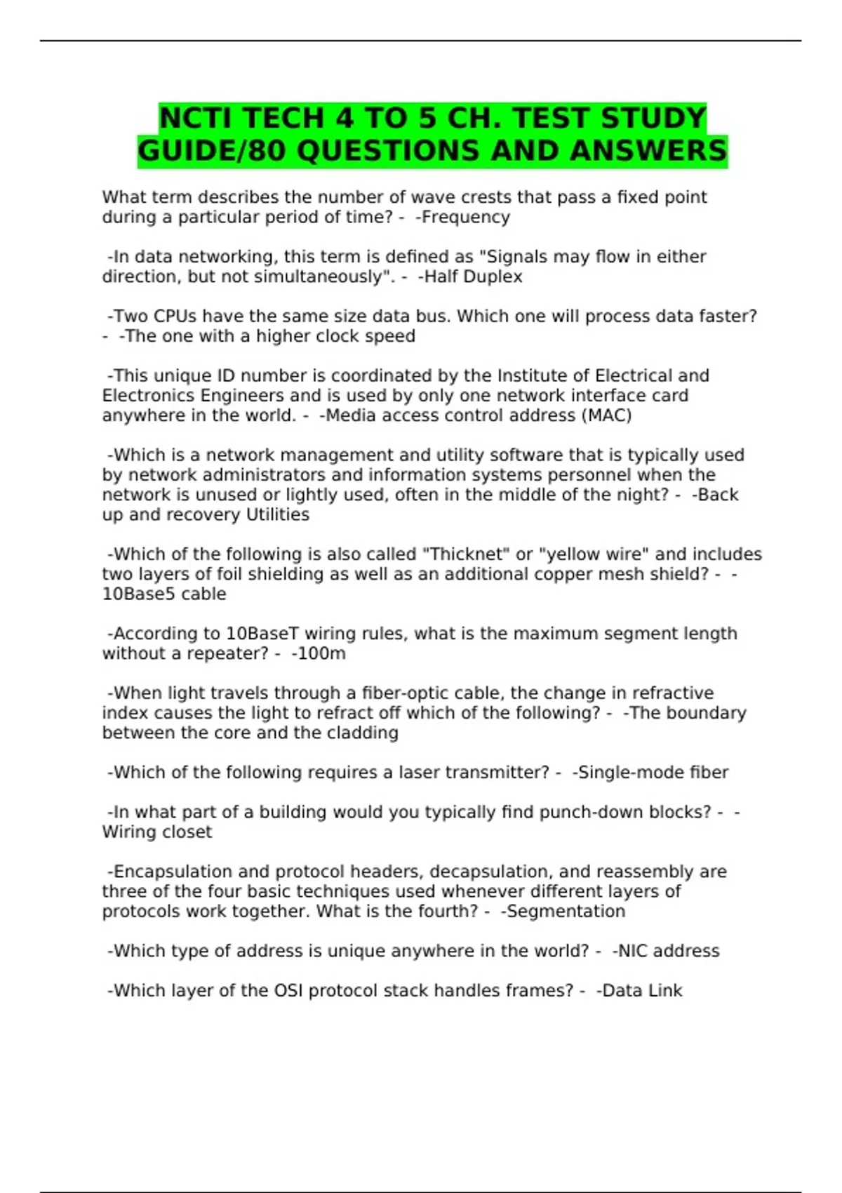 NCTI TECH 4 TO 5 CH. TEST STUDY GUIDE/80 QUESTIONS AND ANSWERS
