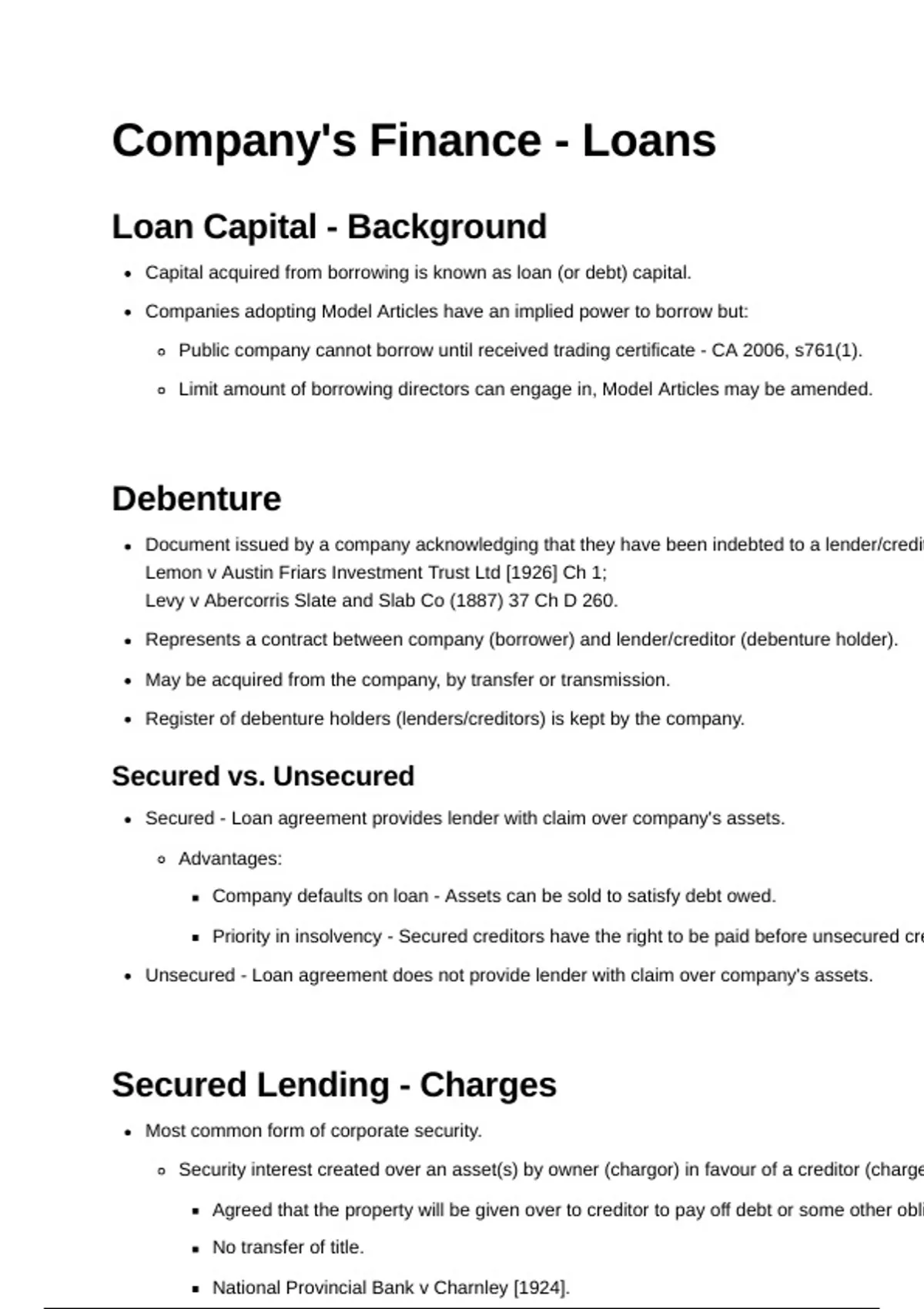 Unsecured - Loan agreement does not provide lender with claim over company's assets.