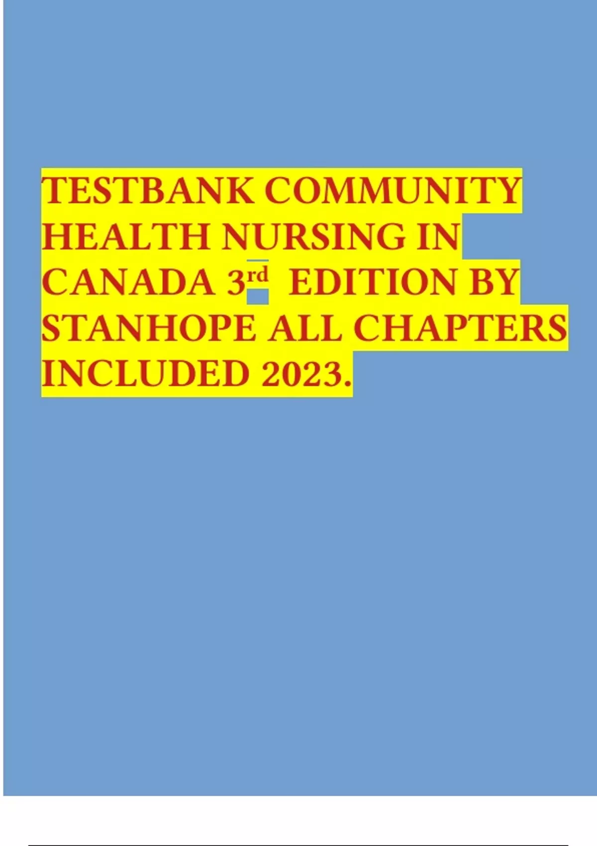 TESTBANK COMMUNITY HEALTH NURSING IN CANADA 3rd EDITION BY STANHOPE ALL CHAPTERS INCLUDED 2023.