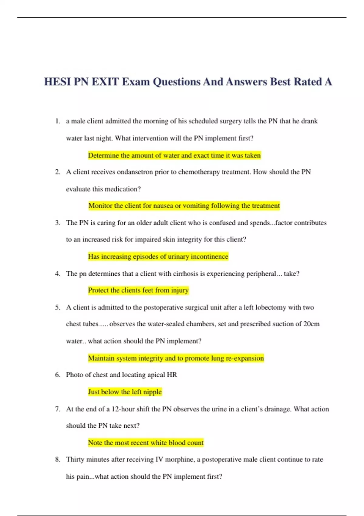 HESI PN EXIT Exam Questions And Answers Best Rated A