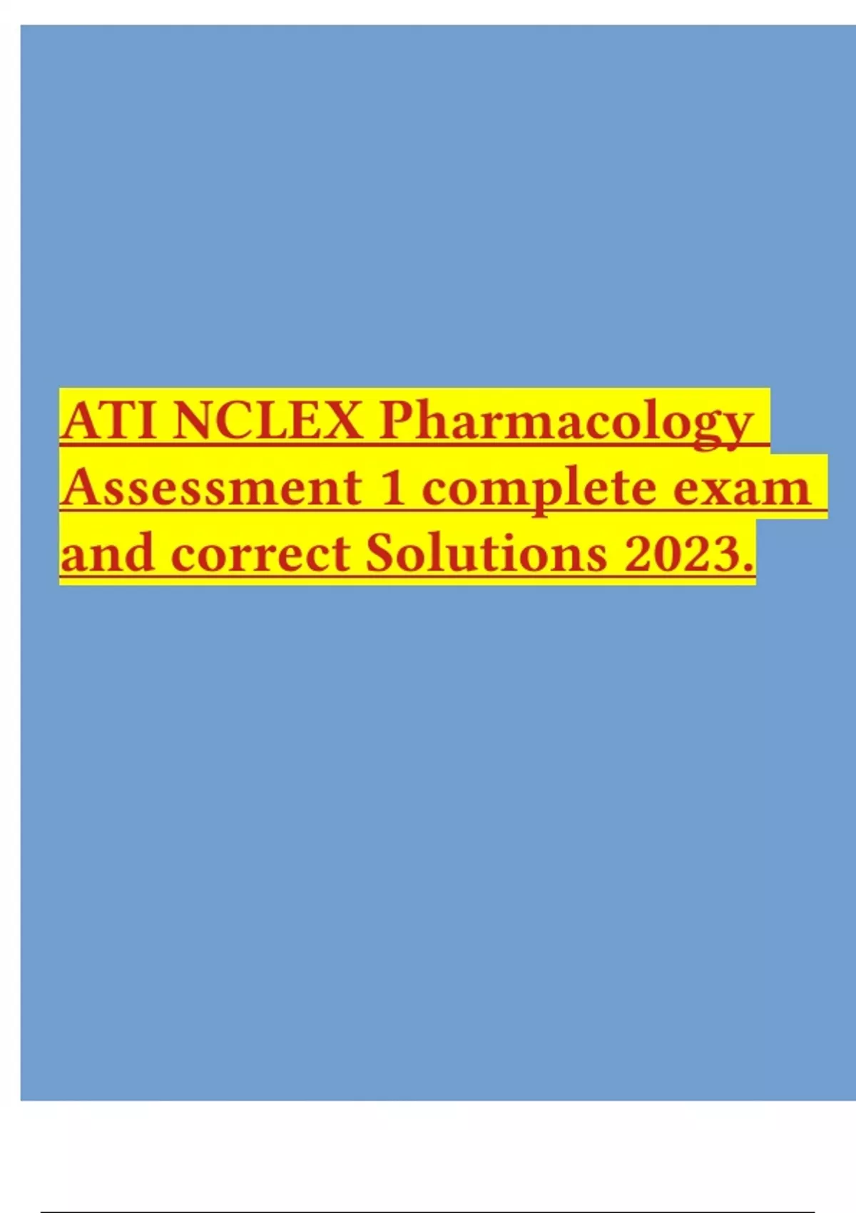 ATI NCLEX Pharmacology Assessment 1 complete exam and correct Solutions 2023.