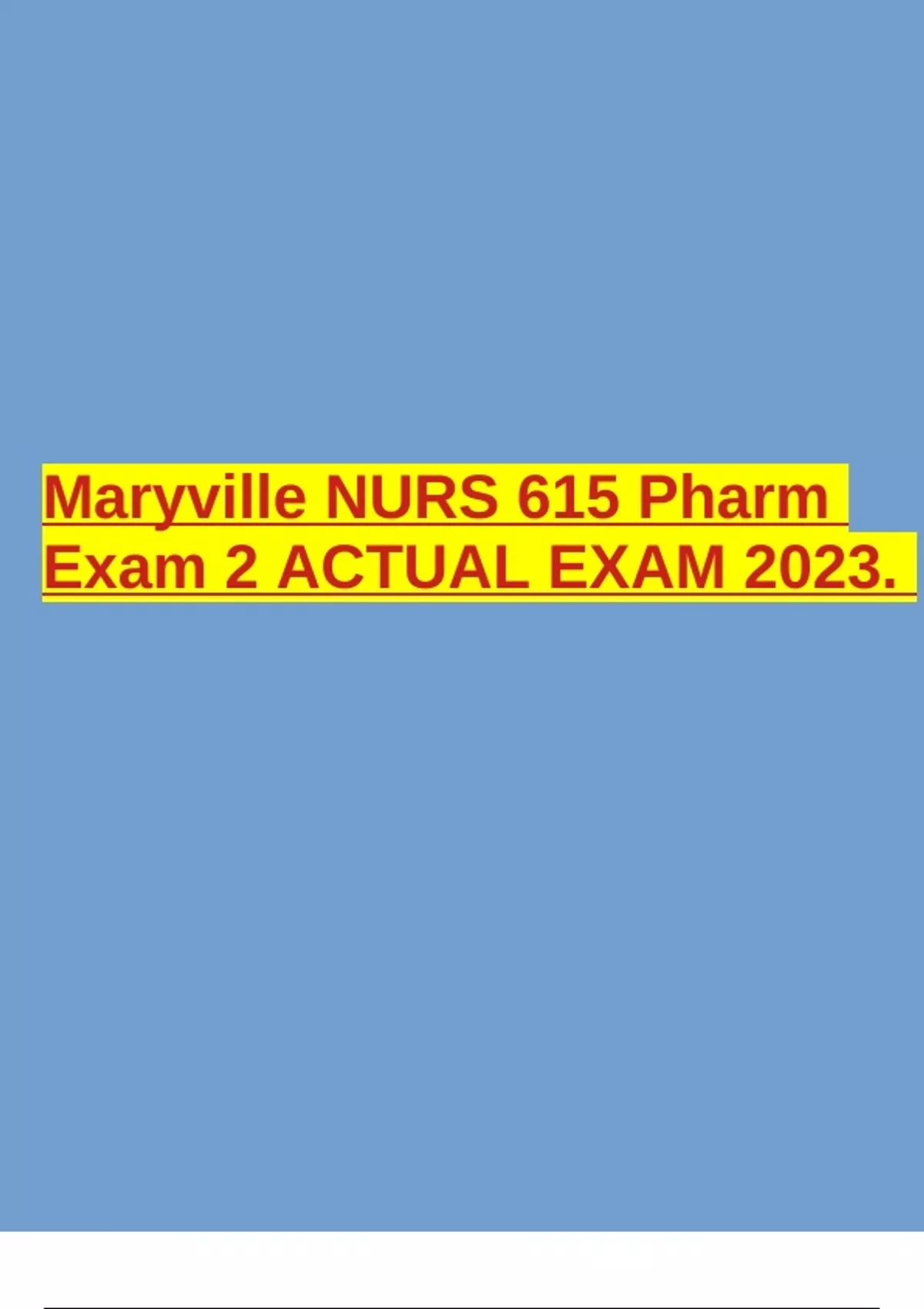 Maryville NURS 615 Pharm Exam 2 ACTUAL EXAM 2023.