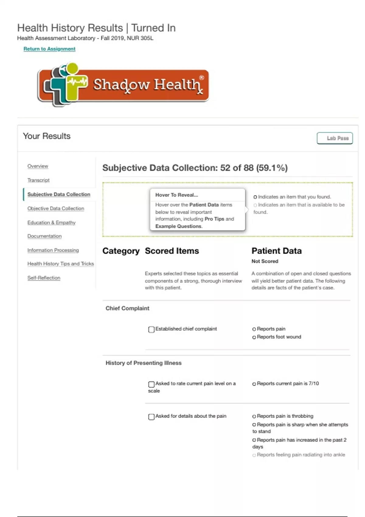 health assessment laboratory fall 2019