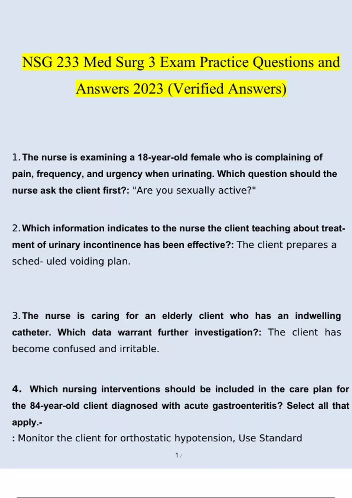 NSG 233 Med Surg 3 Exam Practice Questions and Answers 2023 (Verified Answers) NSG 233 Med Surg 3 Exam Practice Questions and Answers 2023 (Verified Answers)