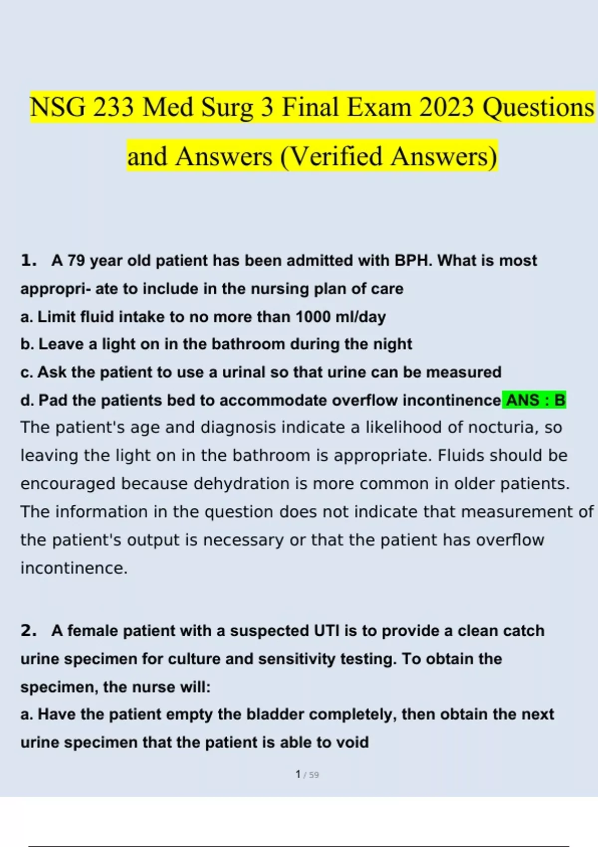 NSG 233 Med Surg 3 Final Exam 2023 Questions