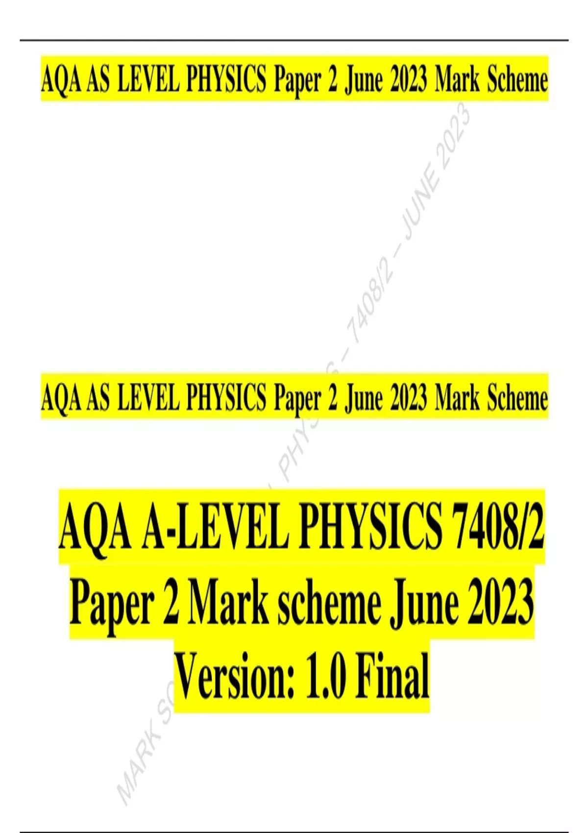 AQA AS LEVEL PHYSICS Paper 2 June 2023 Mark Scheme.