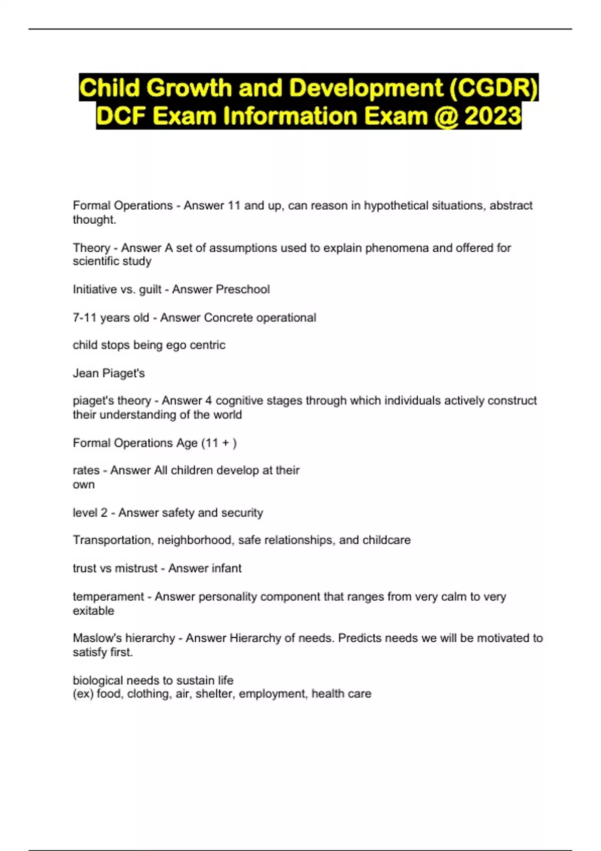 Child Growth and Development (CGDR) DCF Exam Information Exam @ 2023...