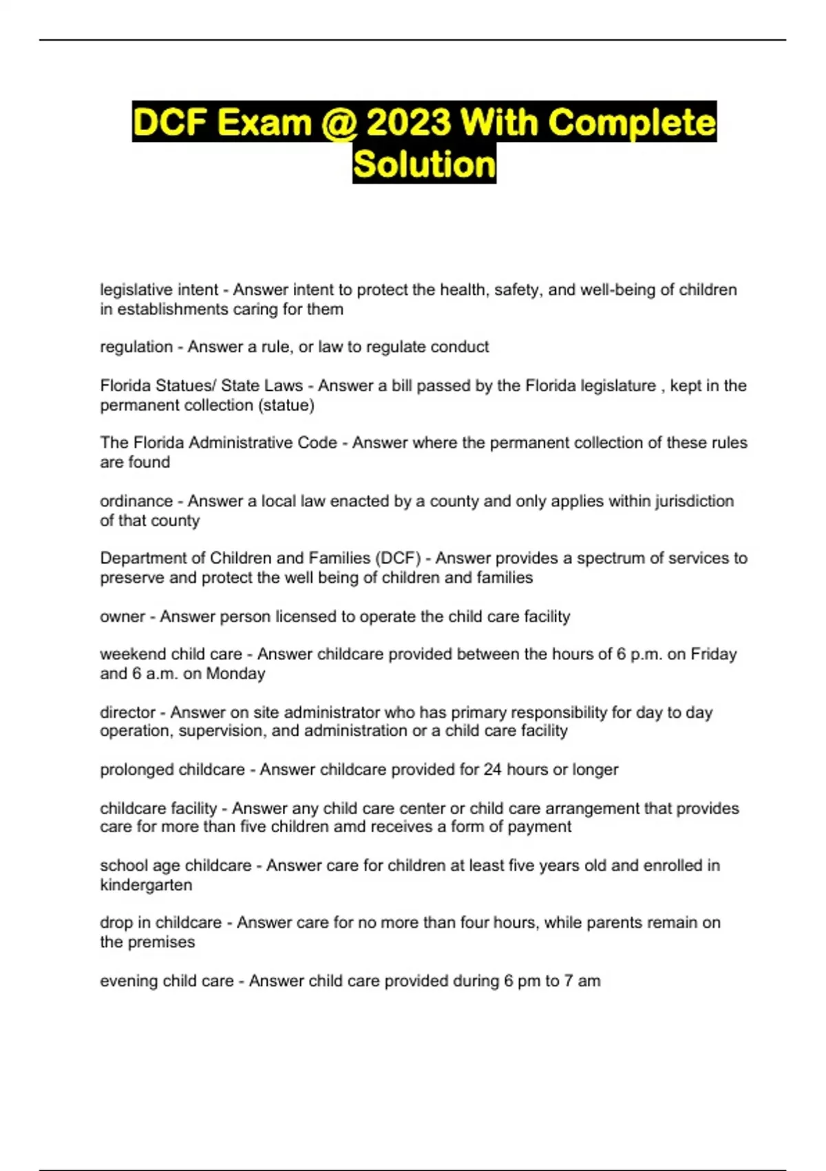 DCF Exam @ 2023 With Complete Solution