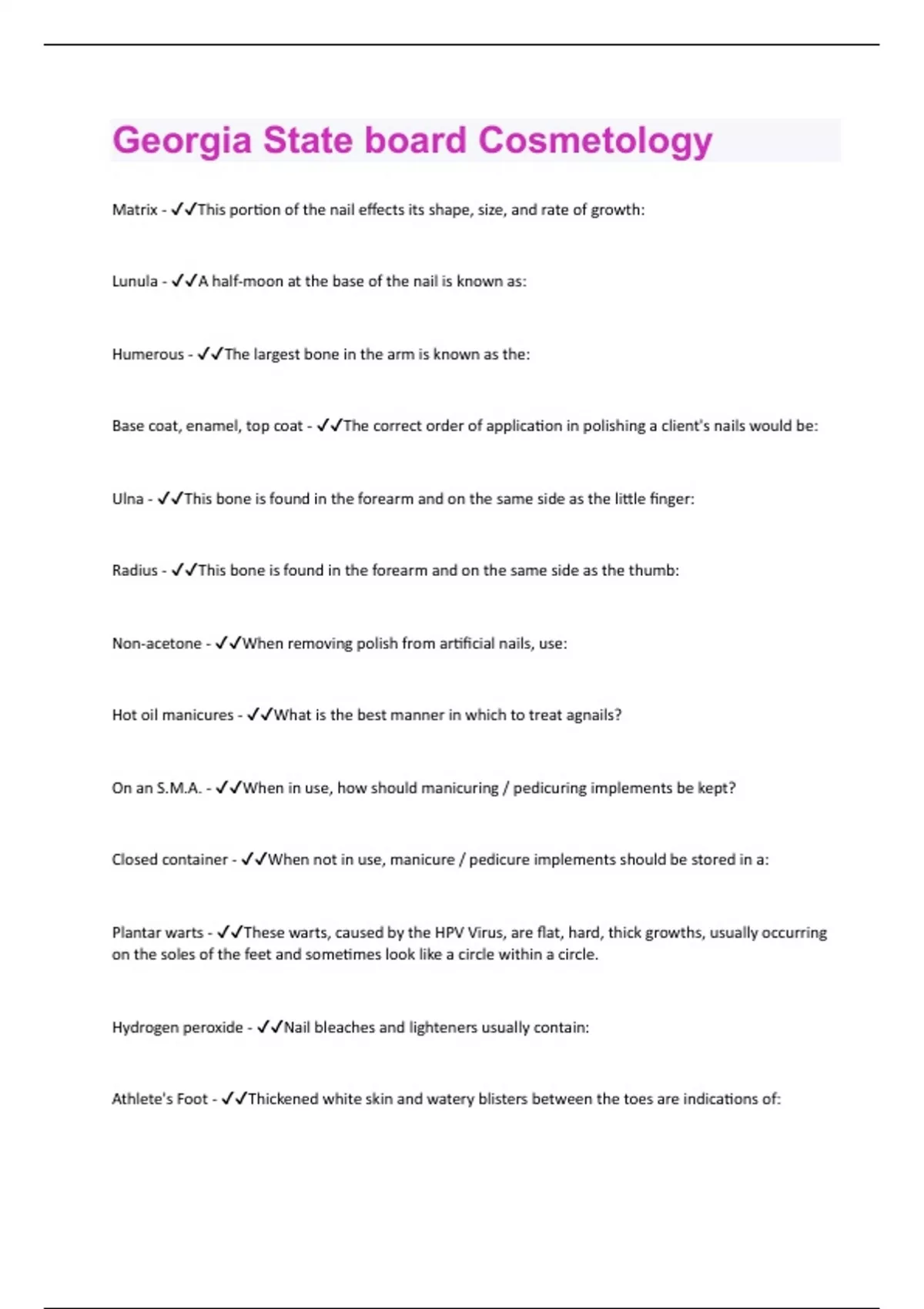 Georgia State board Cosmetology |25 Questions with 100 % Correct Answers | Verified