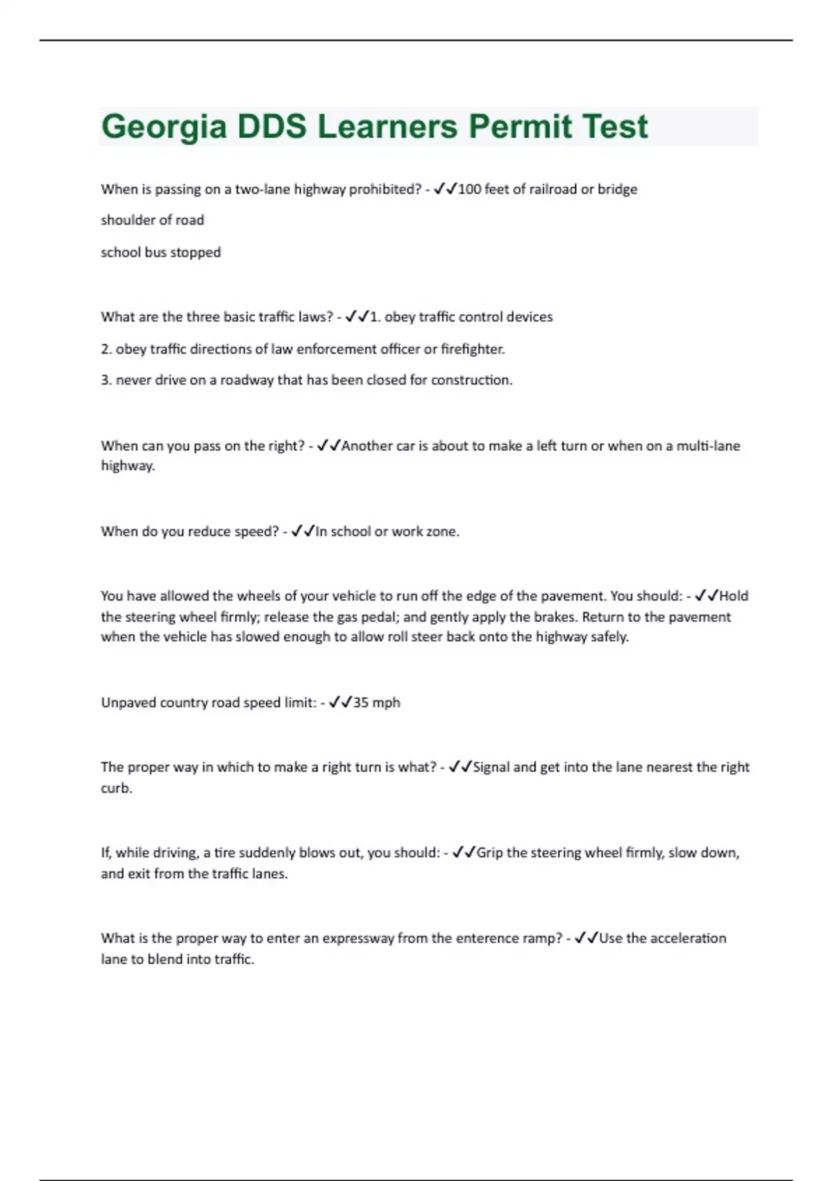 Georgia DDS Learners Permit Test | 50 Questions with 100 % Correct Answers | Verified