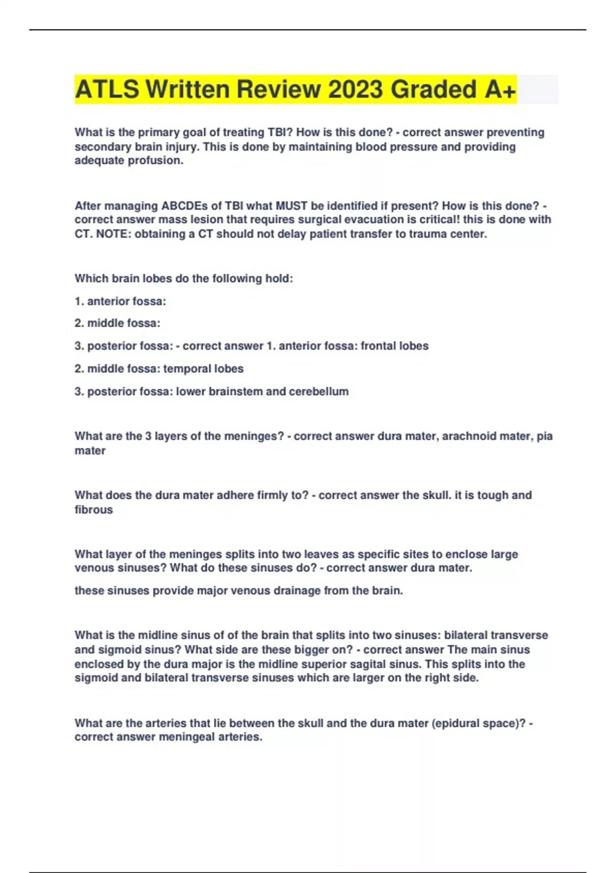 atls written review latest 2023 graded a
