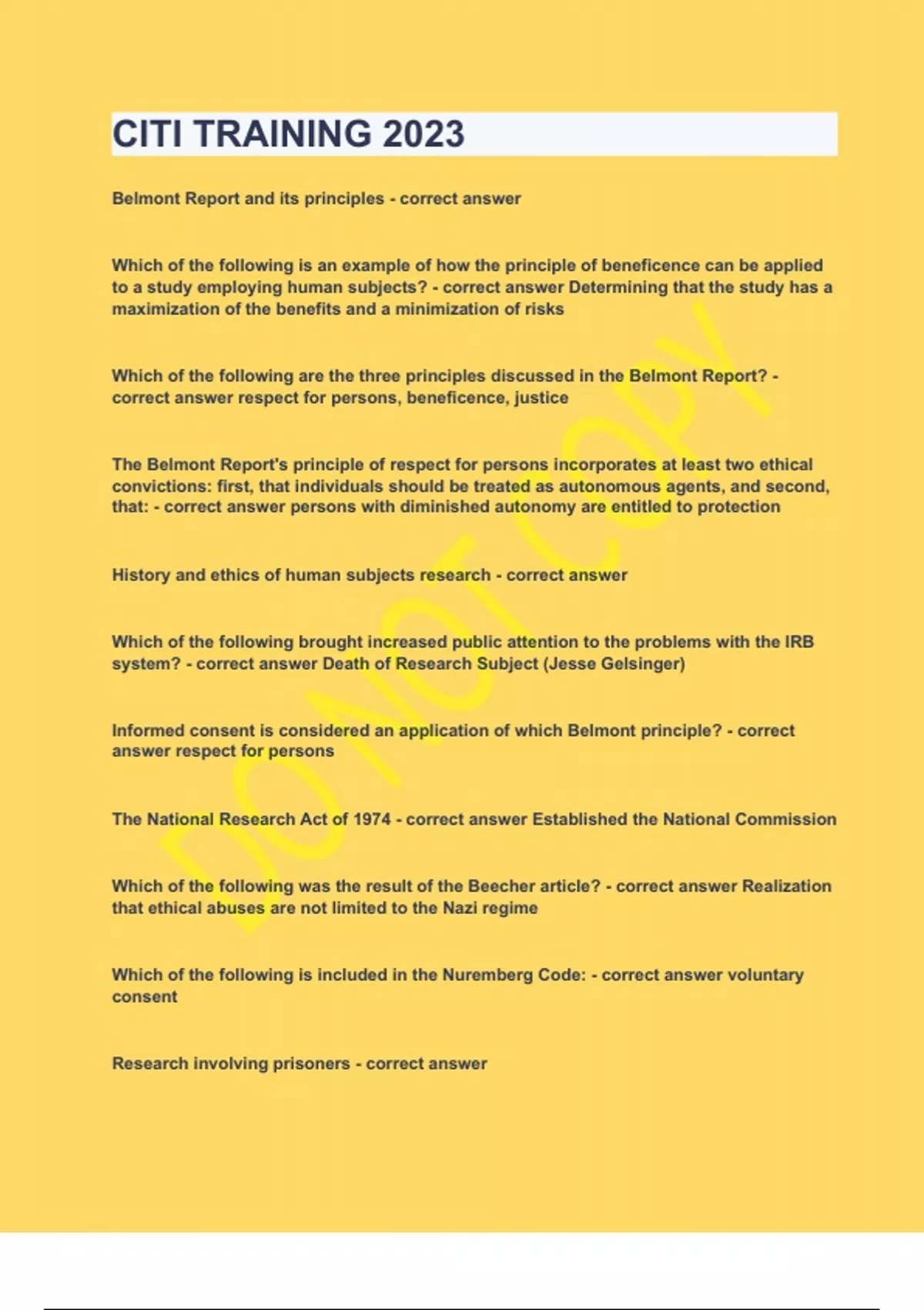 CITI TRAINING 2023|WITH 100% CORRECT ANSWER|GUARANTEED SUCCESS