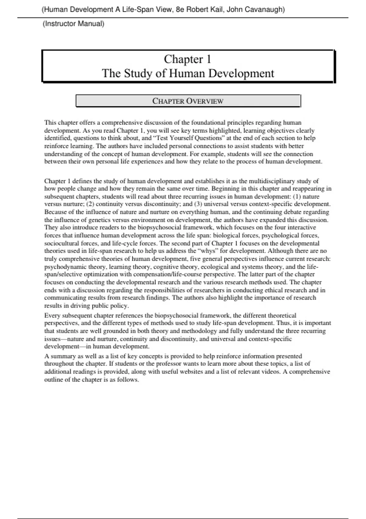 Chapter 1 defines the study of human development and establishes it as the multidisciplinary study of