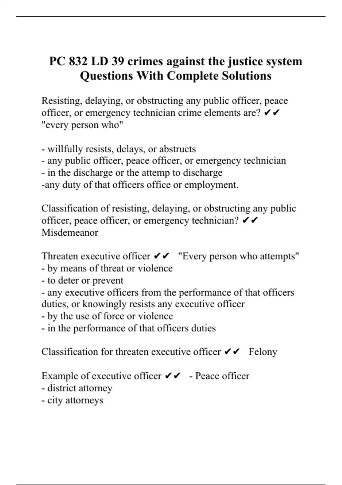 PC 832 LD 39 crimes against the justice system Questions With Complete Solutions