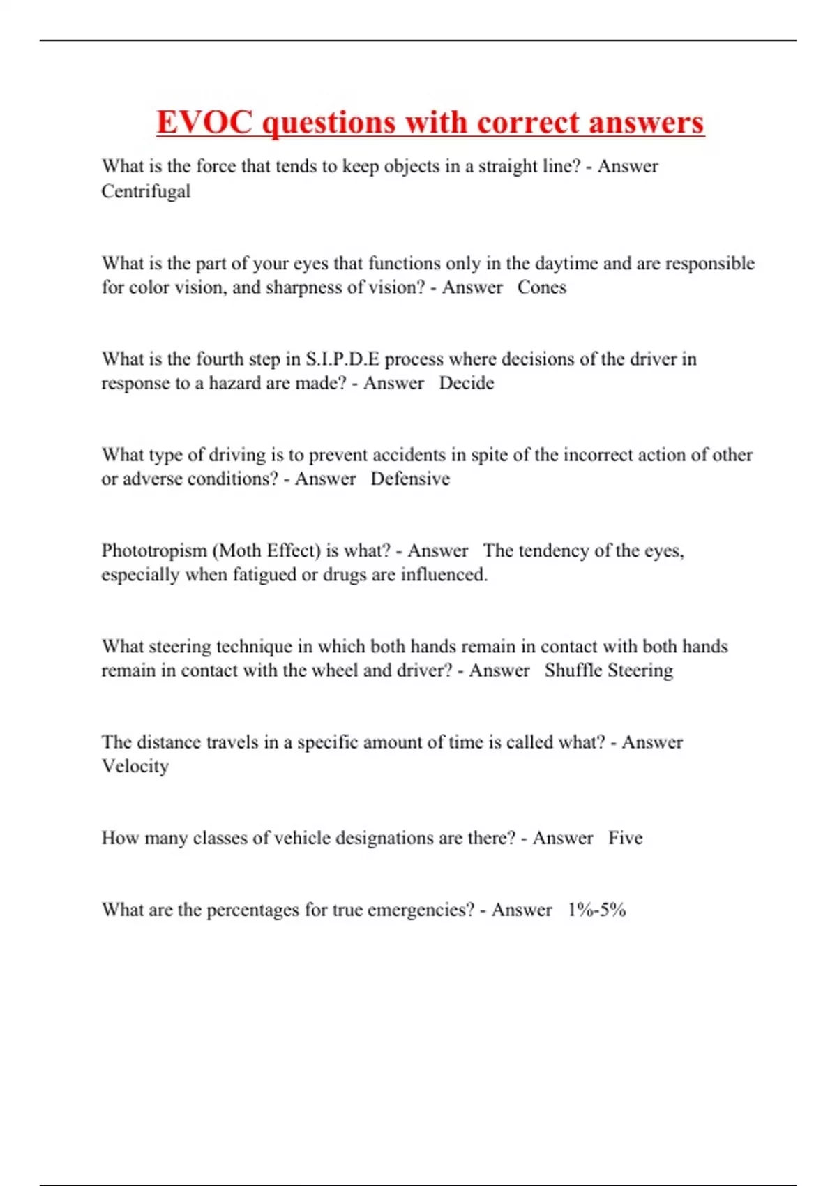EVOC questions with correct answers