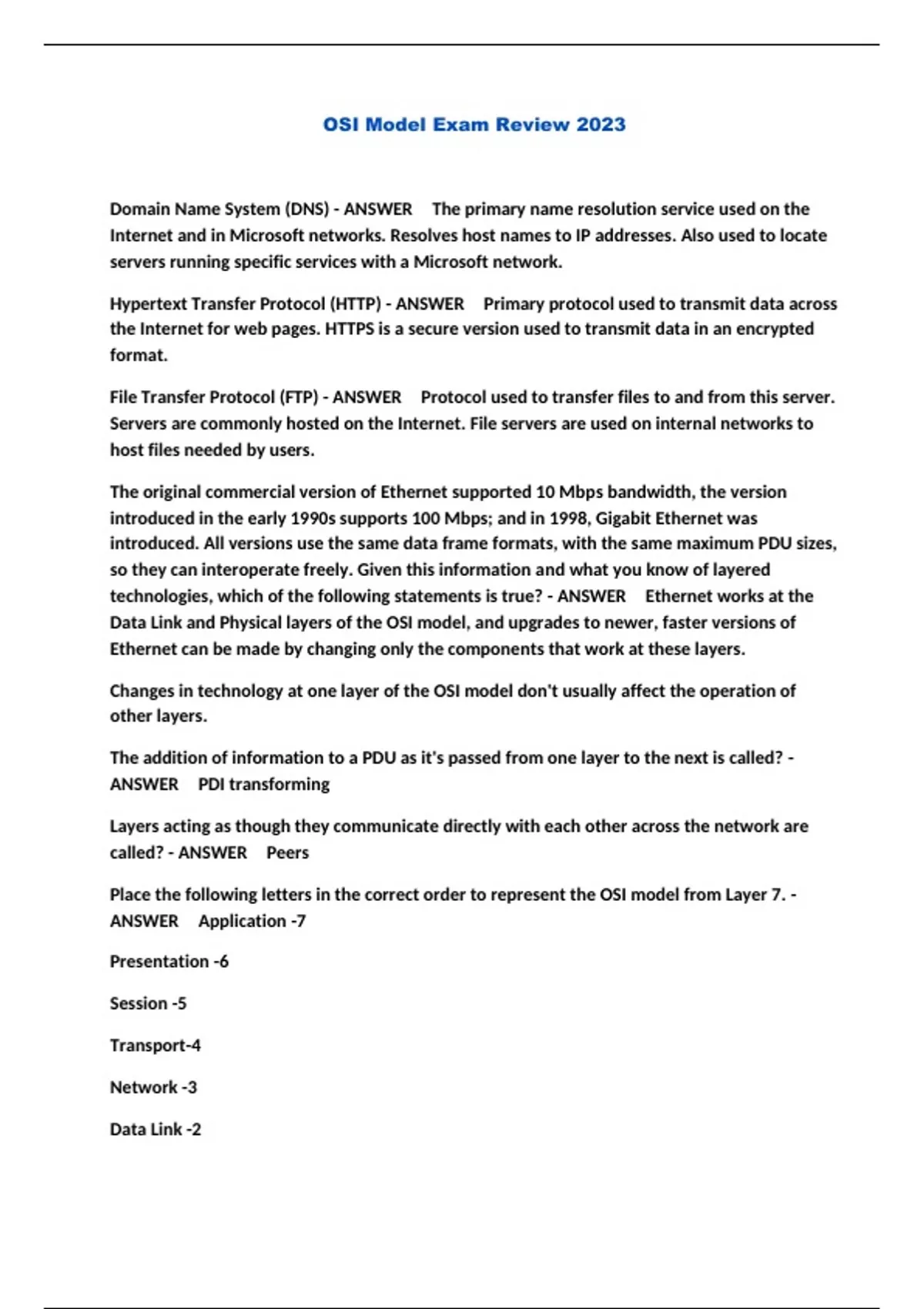 OSI Model Exam Review 2023..