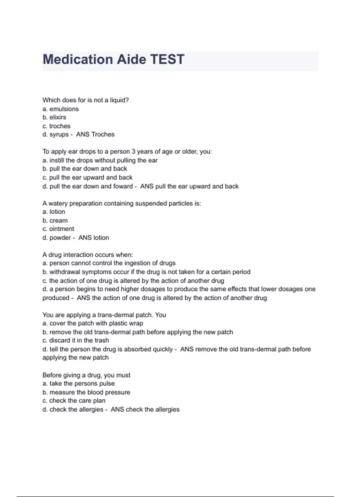 Medication Aide TEST Questions & Answers 2023 ( A+ GRADED 100% VERIFIED)