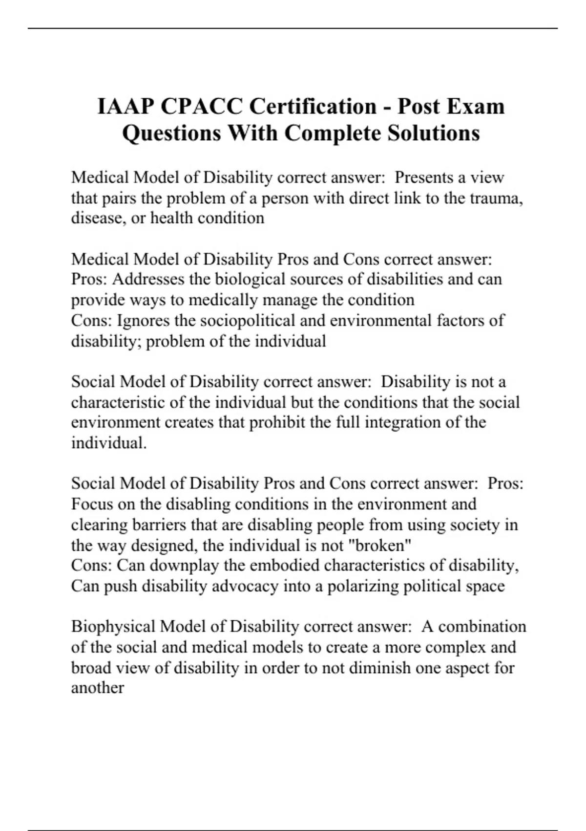 IAAP CPACC Certification - Post Exam Questions With Complete Solutions