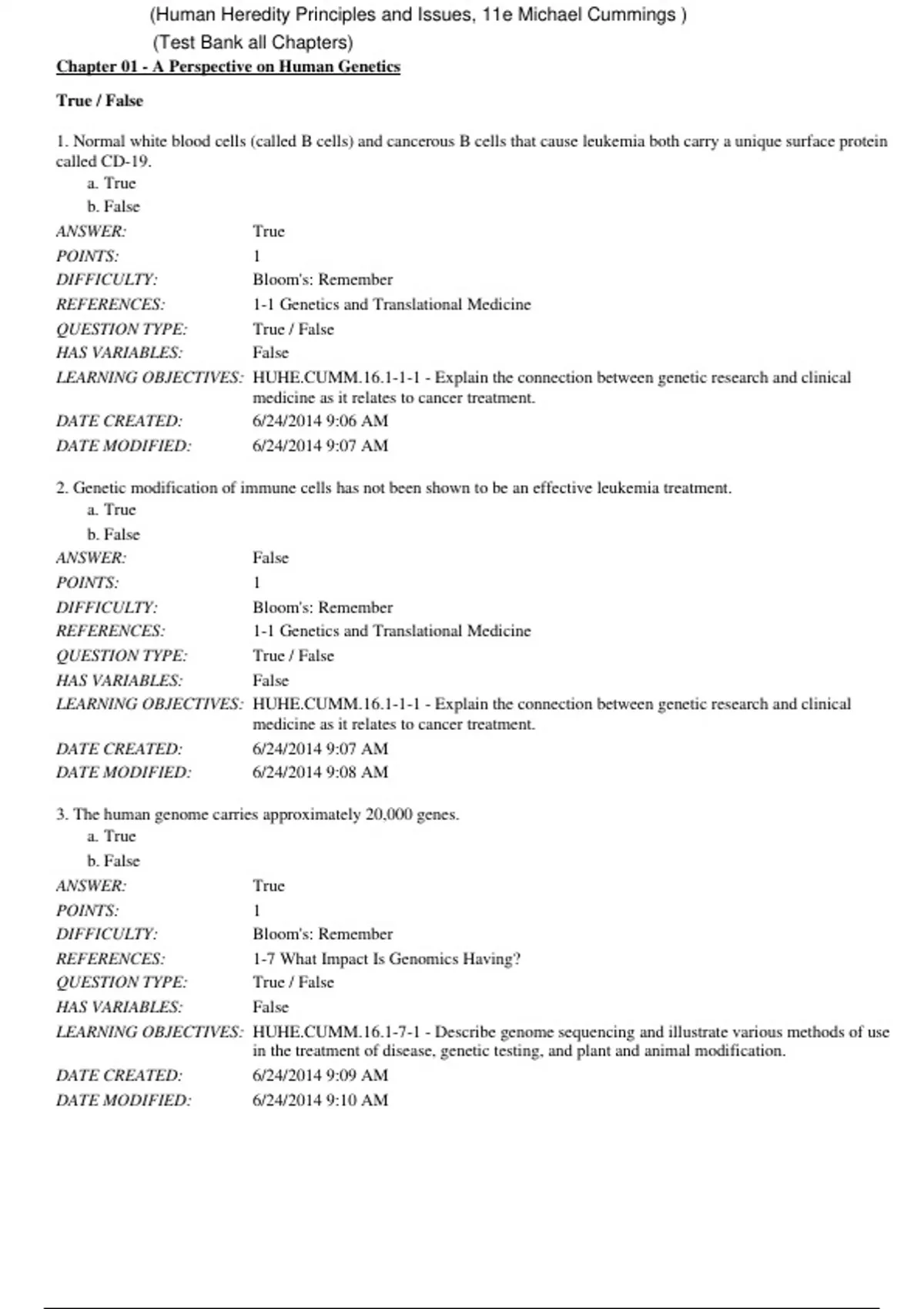 Human Heredity Principles and Issues, 11e Michael Cummings (Test Bank) Human Heredity Principles and Issues, 11e Michael Cummings (Test Bank)