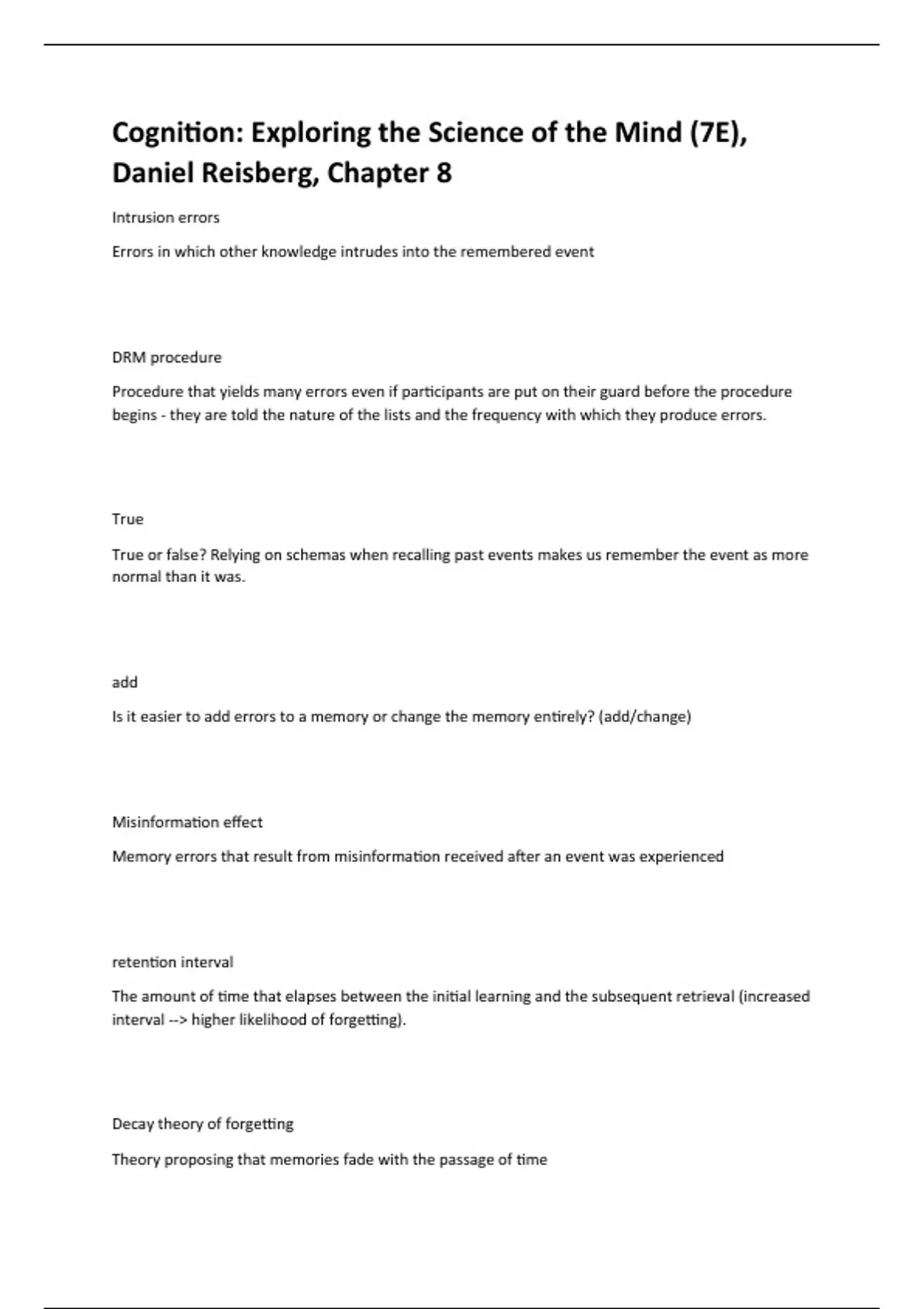 Cognition: Exploring the Science of the Mind (7E), Daniel Reisberg, Chapter 8 A+ Guaranteed
