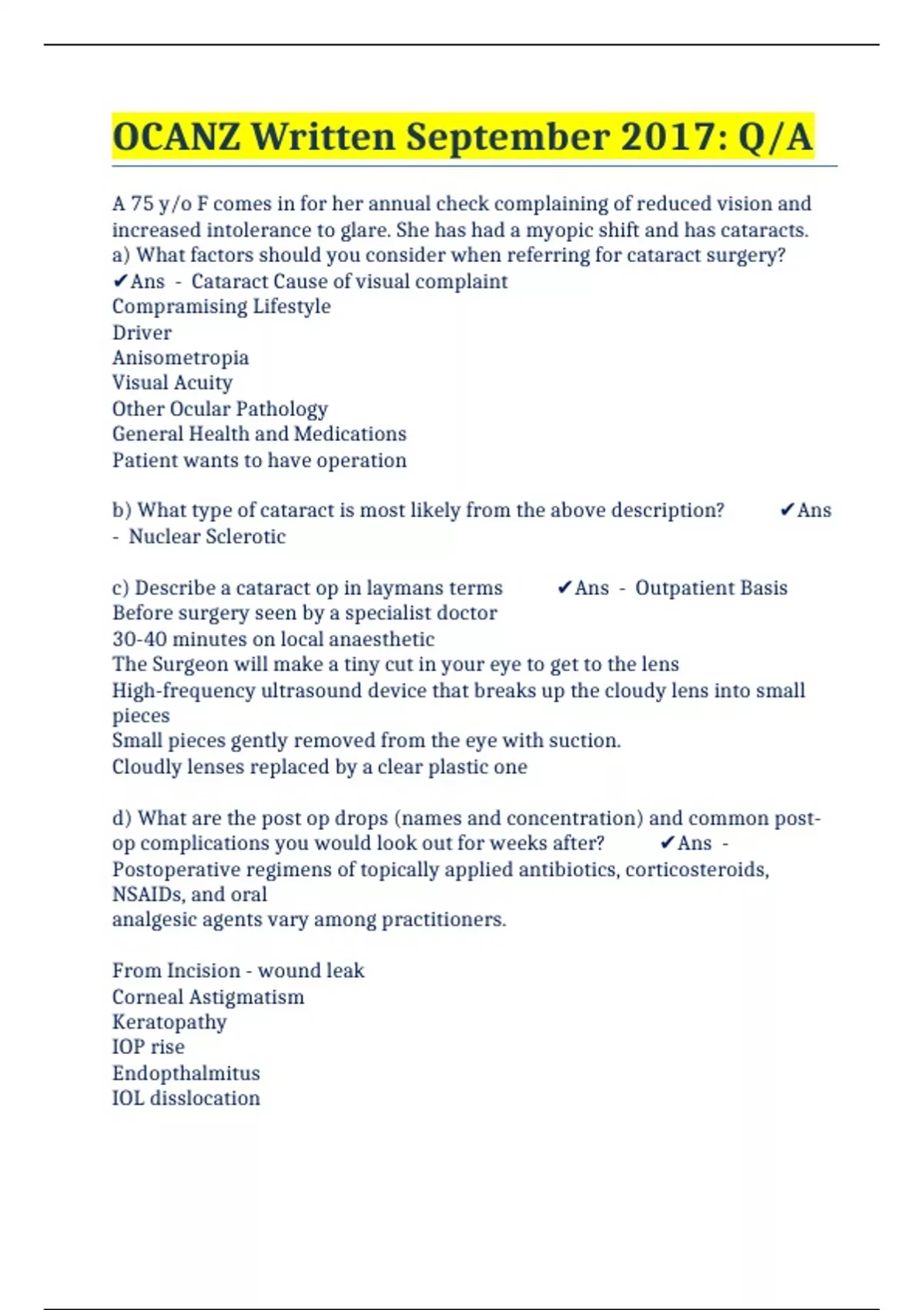 OCANZ Written September 2017: Q/A