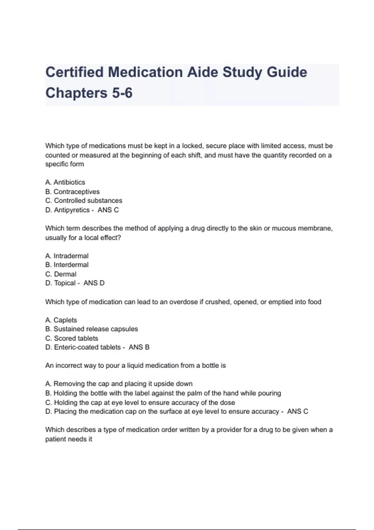 Certified Medication Aide Study Guide Chapters 5-6 Questions & Answers 2023 ( A+ GRADED 100% VERIFIED)