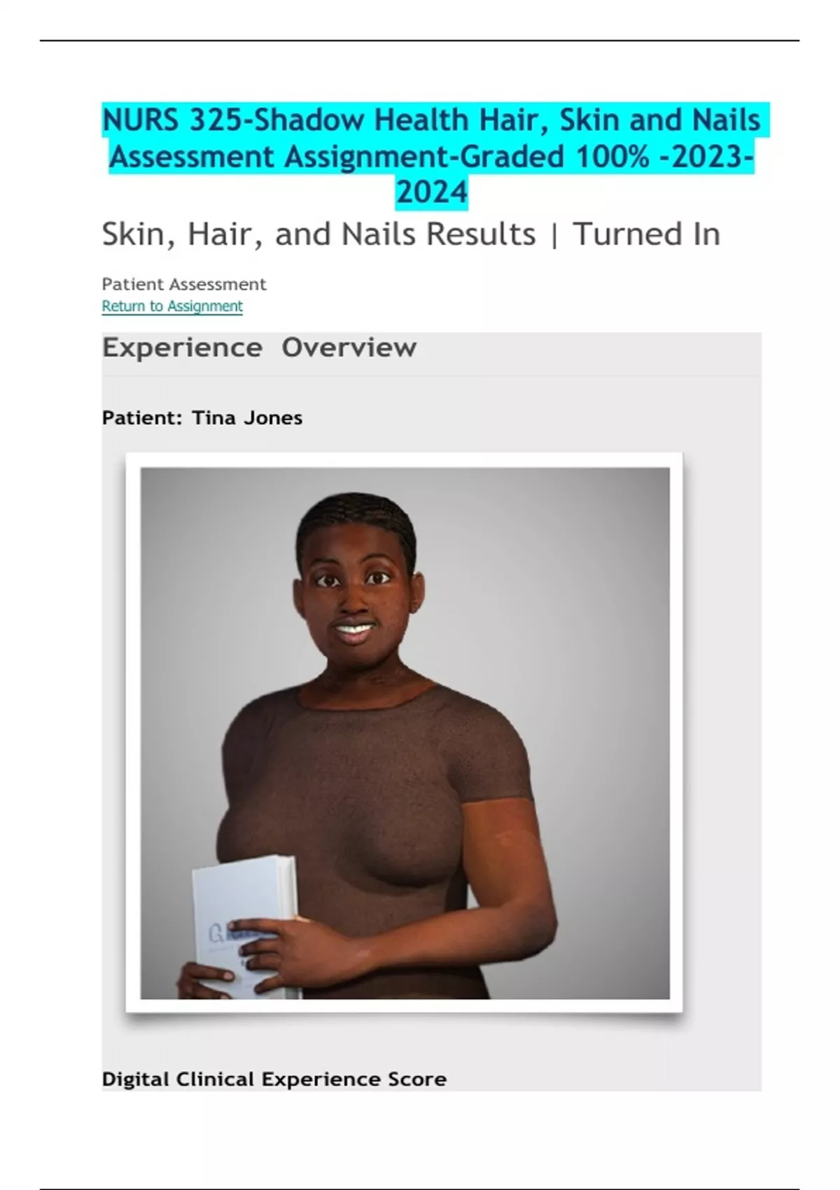NURS 325-Shadow Health Hair, Skin and Nails Assessment Assignment-Graded 100% -2023- 2024