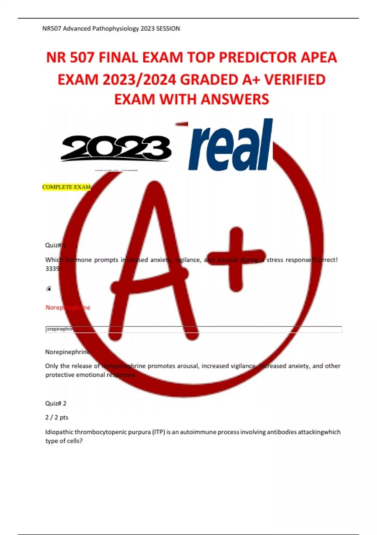 NR 507 FINAL EXAM TOP PREDICTOR APEA EXAM 2023/2024 GRADED A+ VERIFIED EXAM WITH ANSWERS