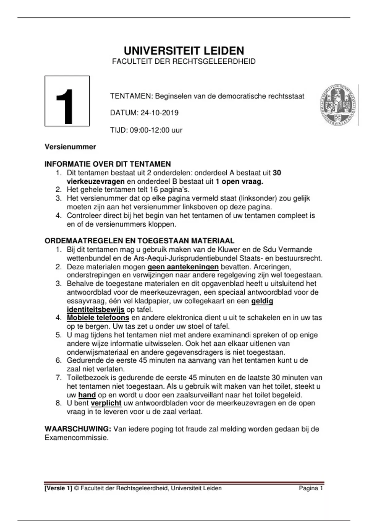 [Versie 1] © Faculteit der Rechtsgeleerdheid, Universiteit Leiden Pagina 1