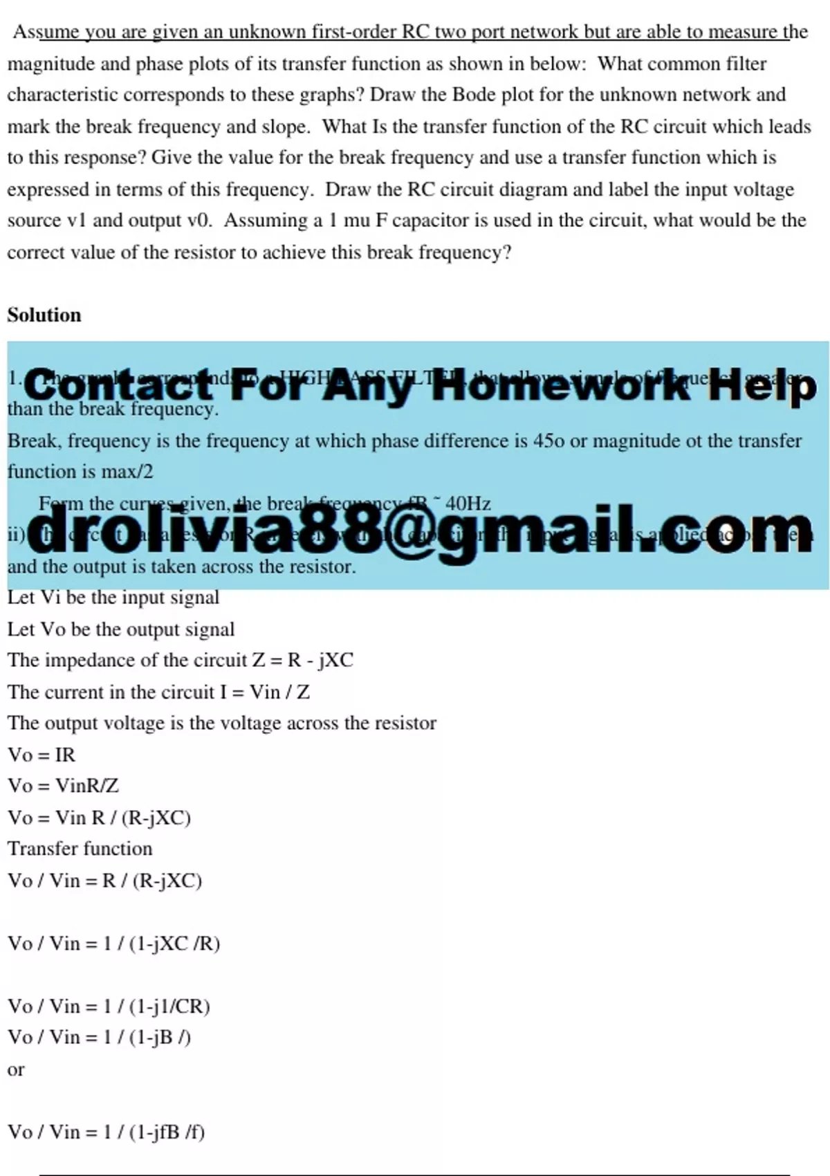 expressed in terms of this frequency. Draw the RC circuit diagram and label the input voltage