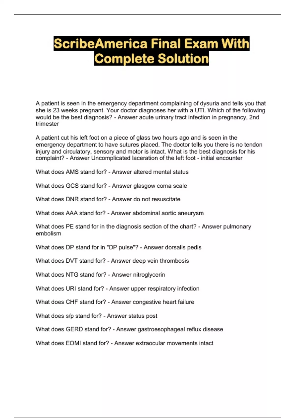ScribeAmerica Final Exam With Complete Solution