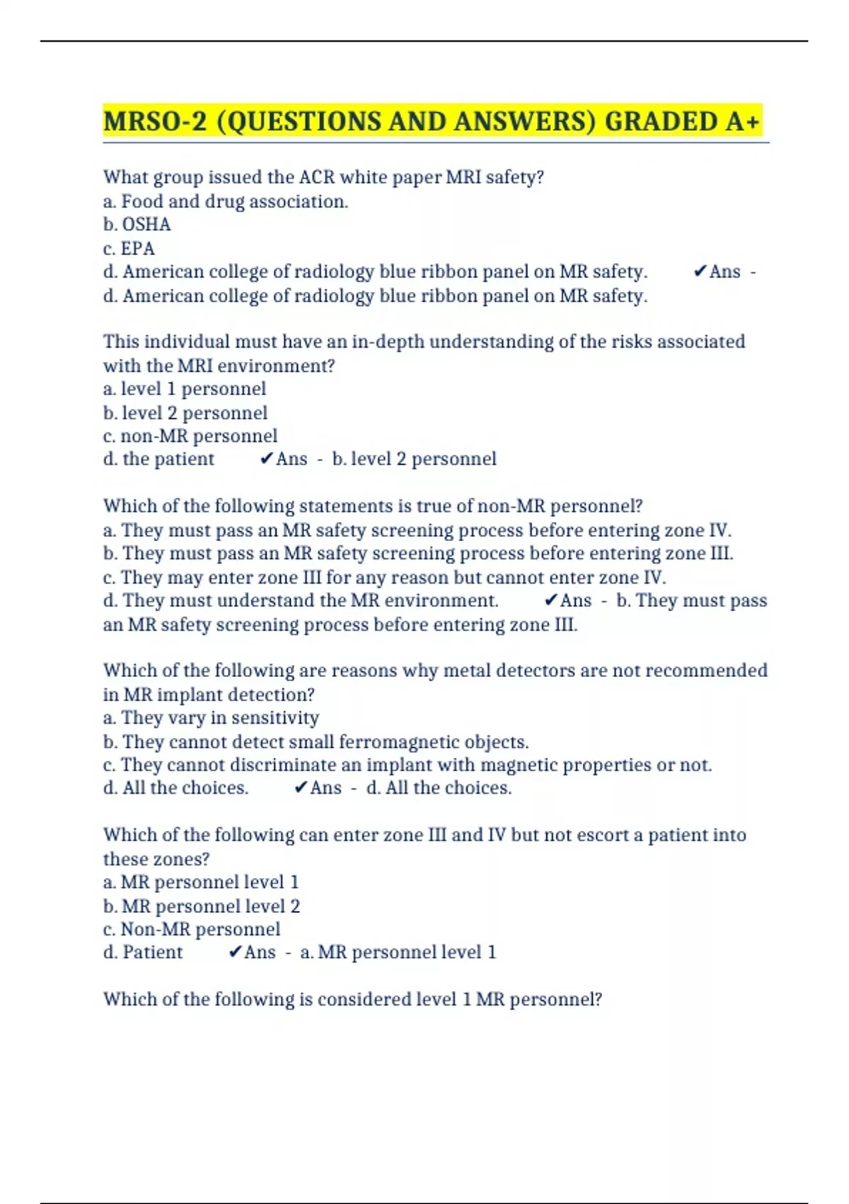 MRSO-2 (QUESTIONS AND ANSWERS) GRADED A+