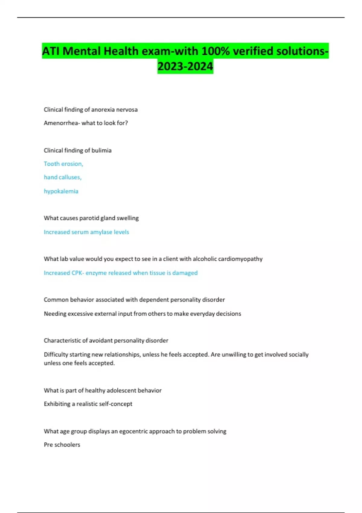 ATI Mental Health exam study guide-with 100% verified solutions-
