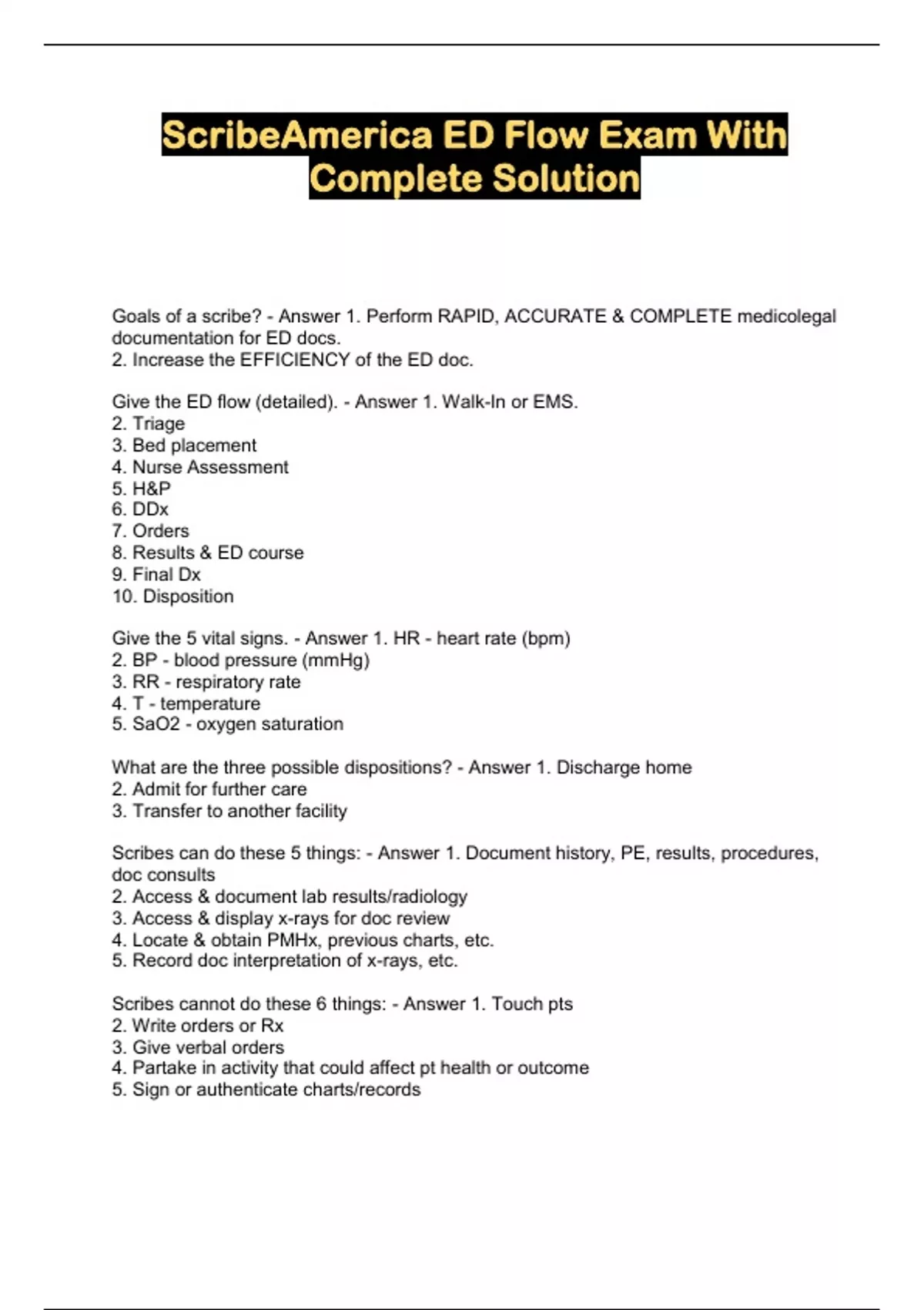 ScribeAmerica ED Flow Exam With Complete Solution