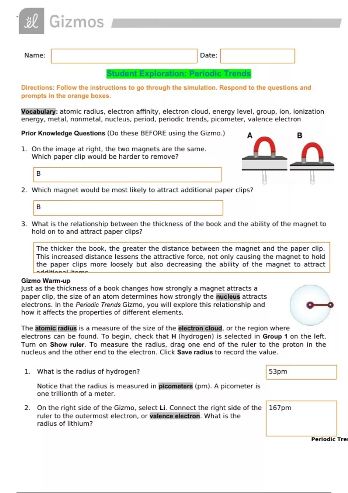 GIZMOS Student Exploration: Periodic Trends