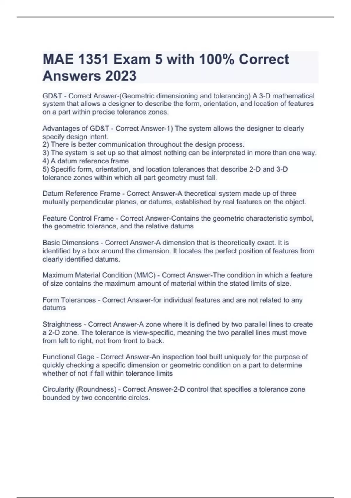 MAE 1351 Exam 5 with 100% Correct Answers 2023