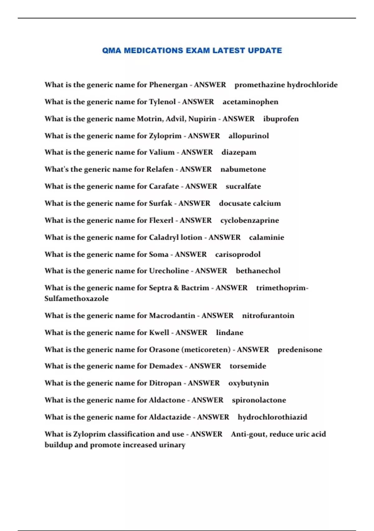 QMA MEDICATIONS EXAM LATEST UPDATE
