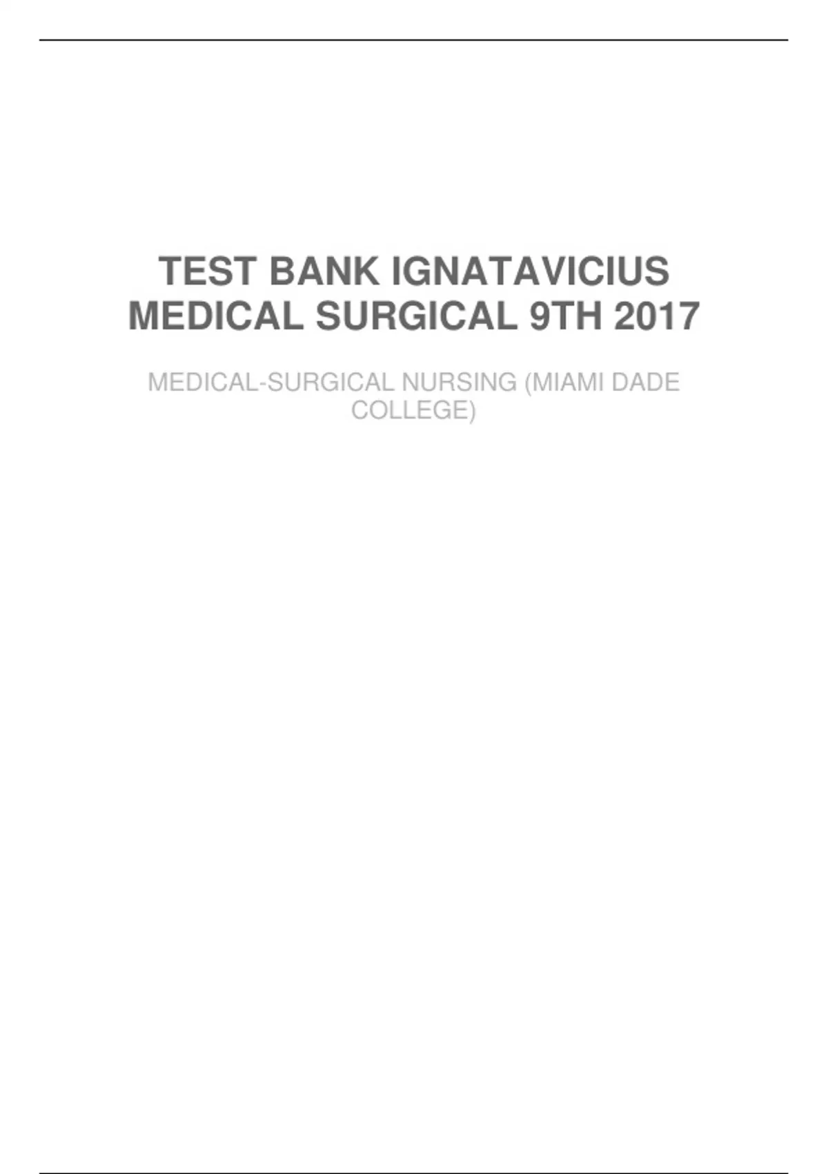 TEST BANK IGNATAVICIUS MEDICAL SURGICAL 9TH EDITION|627 PAGES|VERIFIED&UPDATED|GRADED A|GUARANTEED SUCCESS