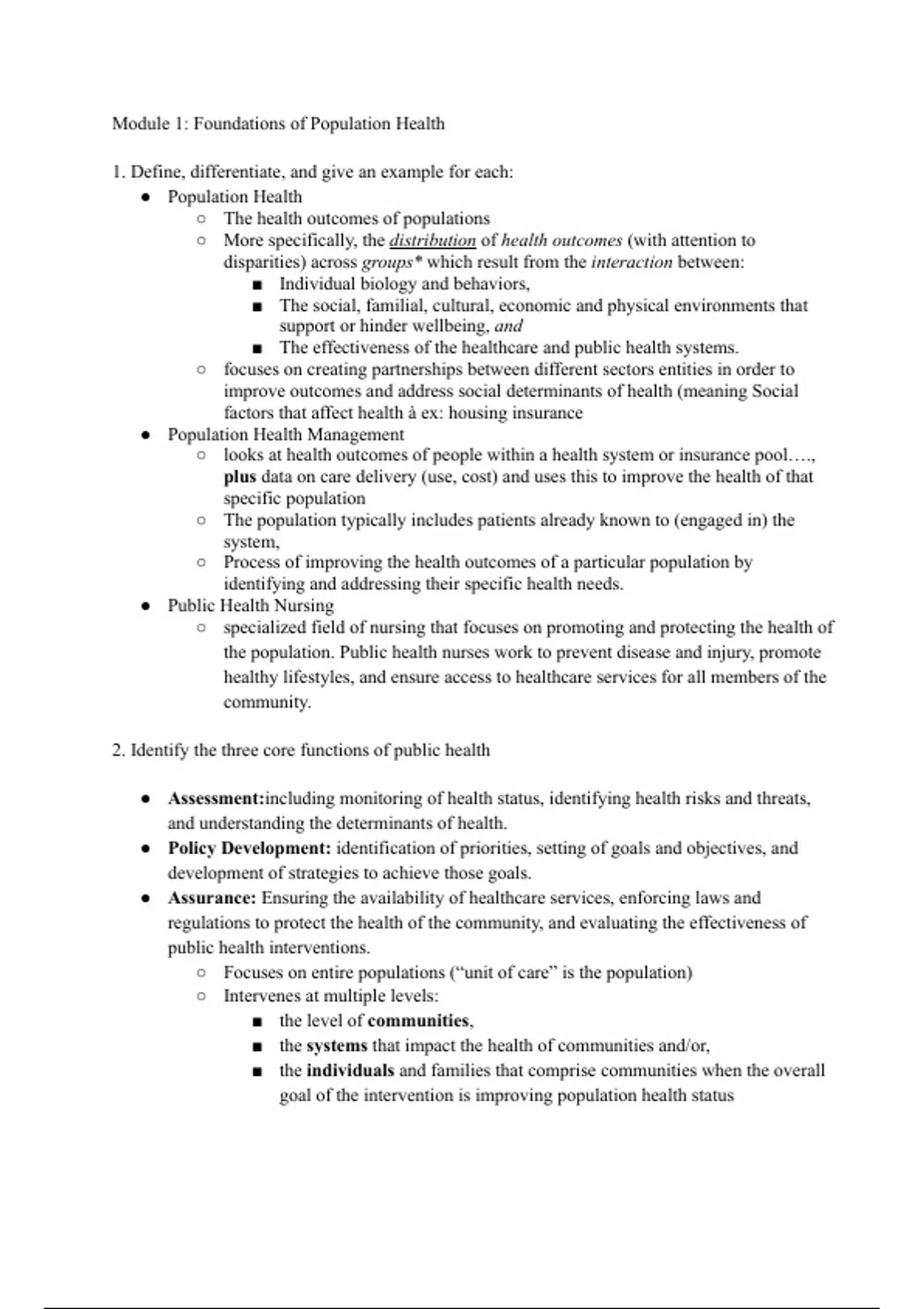 population health for nursing