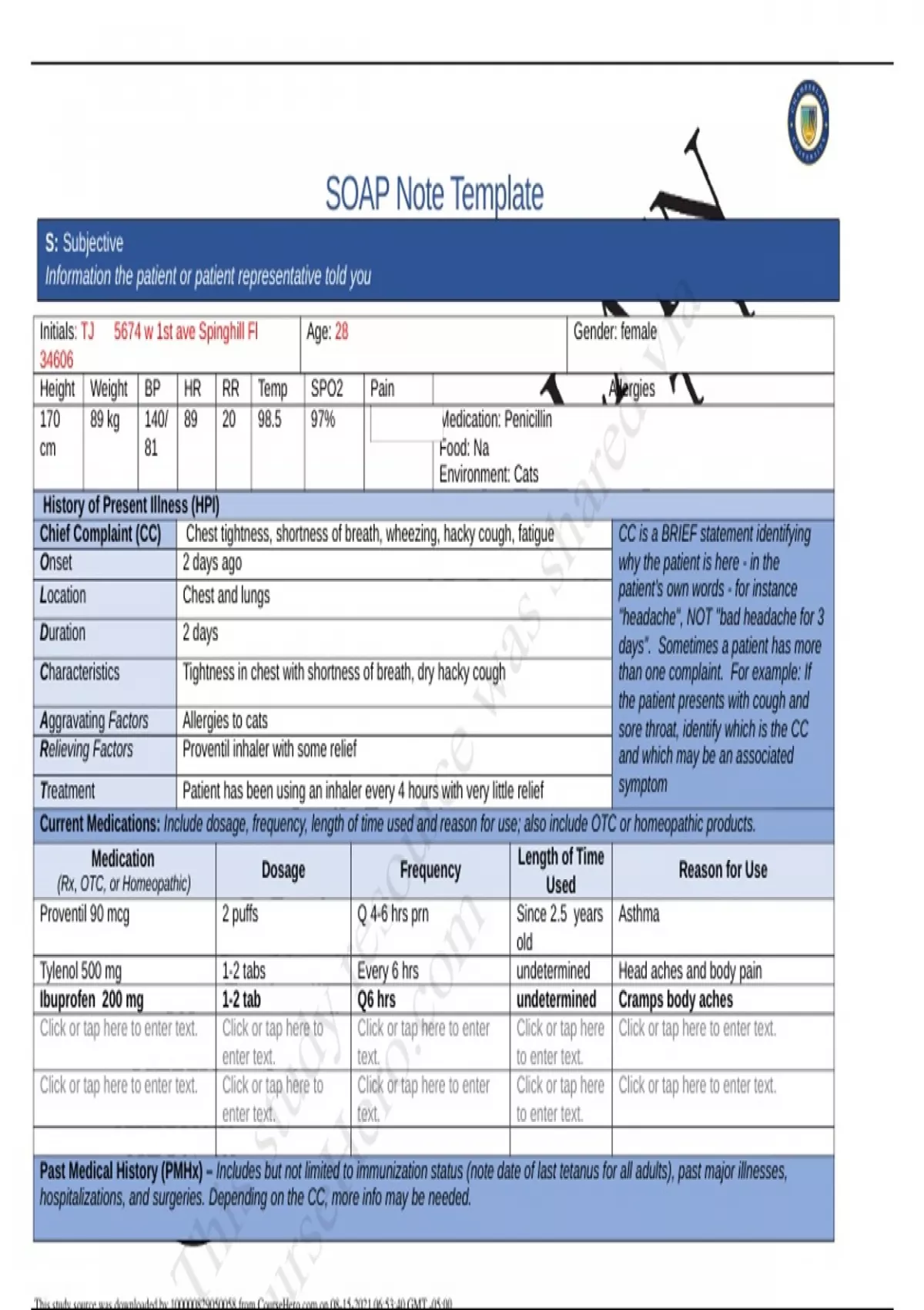 - SOAP Note Template