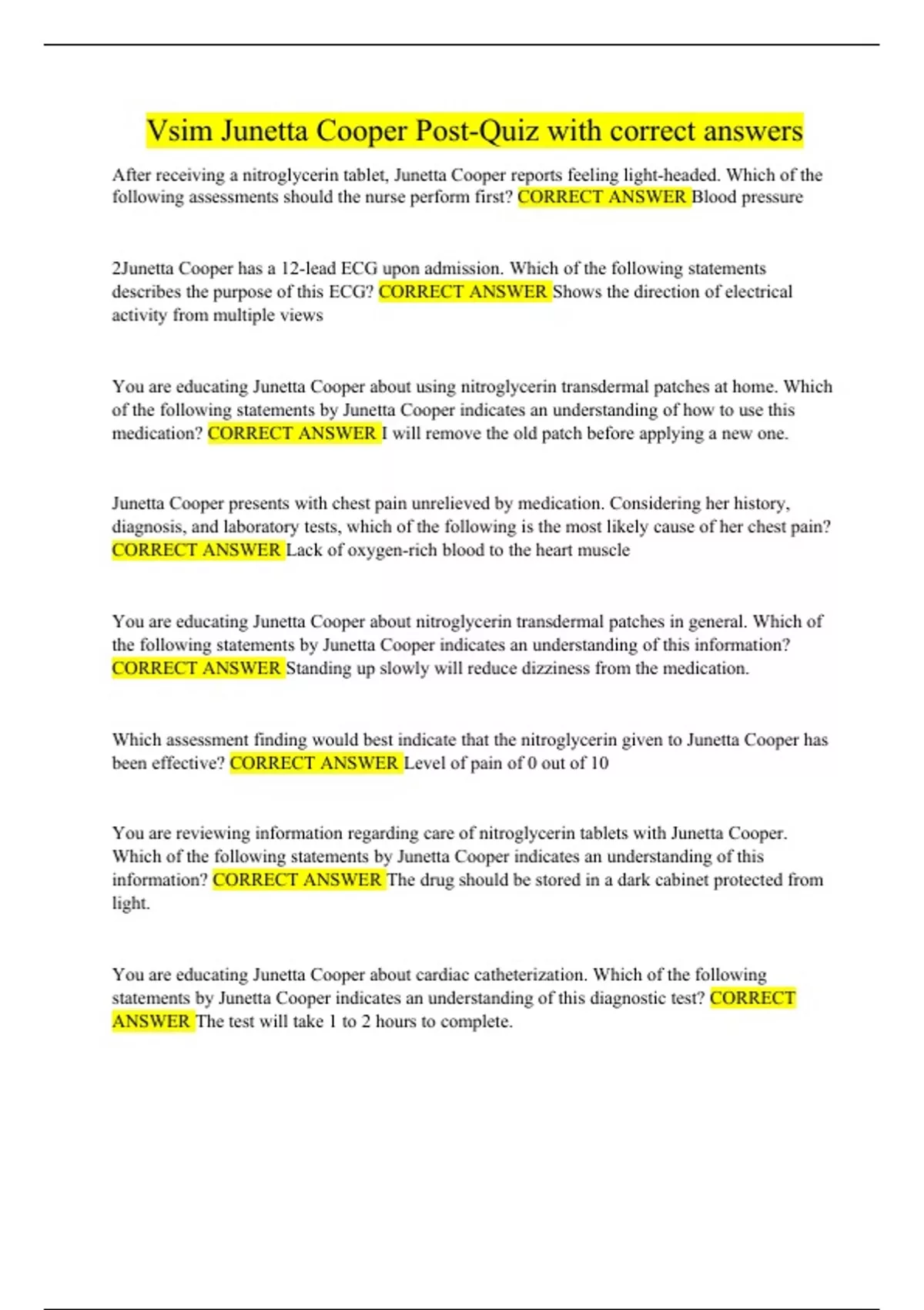 Vsim Junetta Cooper Post-Quiz with correct answers