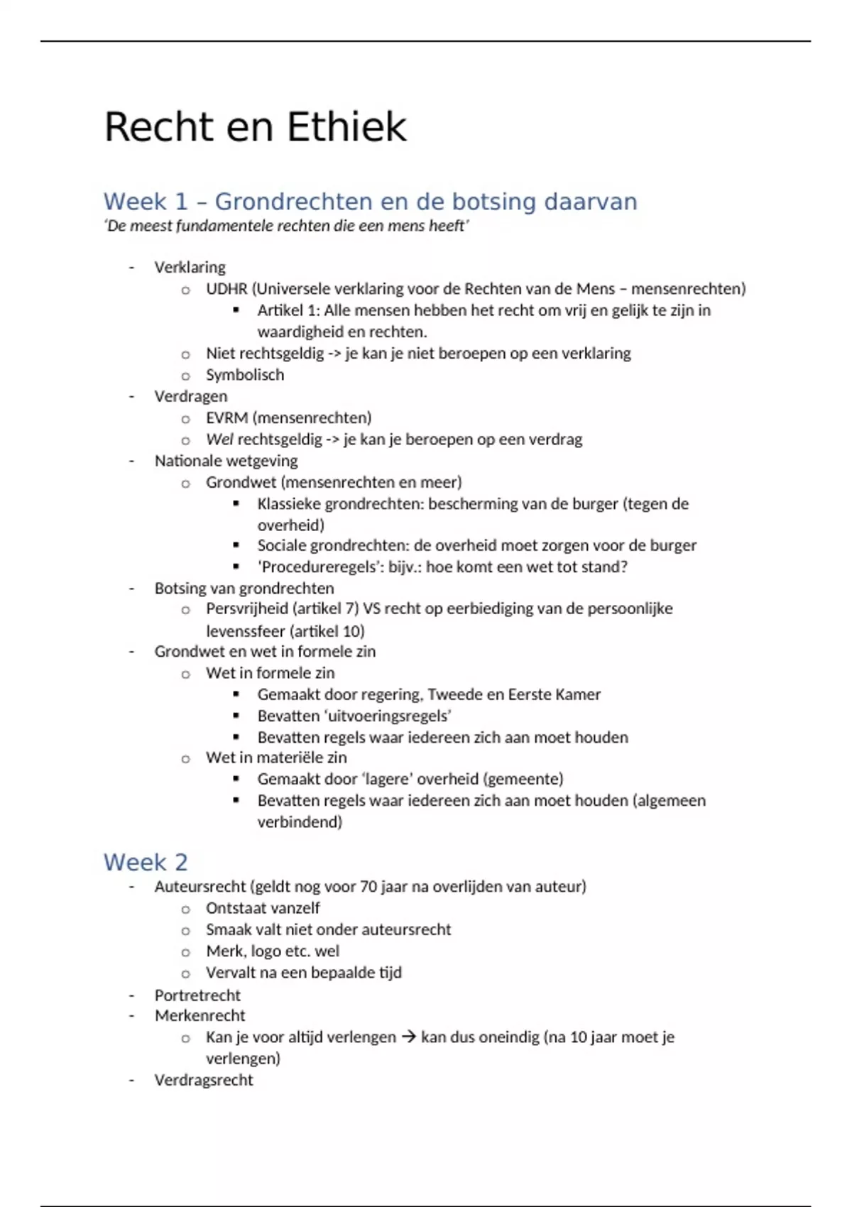 Week 1 – Grondrechten en de botsing daarvan